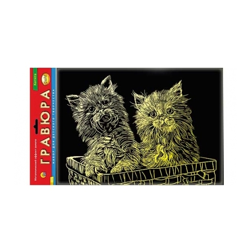 Гравюра Рыжий кот Котята, в пакете с ручкой (Г-2597) золотистая основа