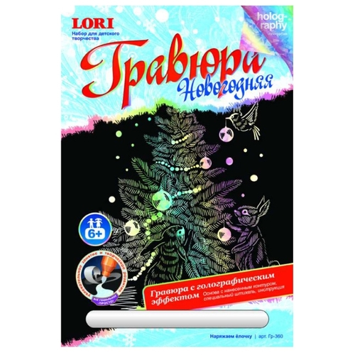 Гравюра LORI Новогодняя. Наряжаем Ёлочку (Гр-360) цветная основа с голографическим эффектом
