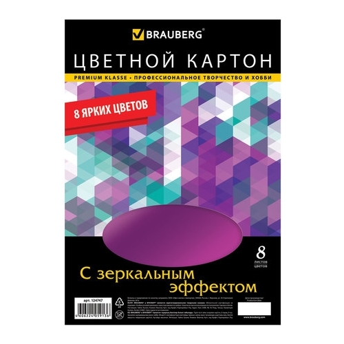 Цветной картон зеркальный BRAUBERG, A4, 8 л., 8 цв.