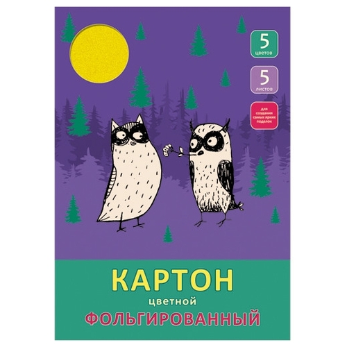 Цветной картон фольгированный Филин и сова Unnika land, 20x28 см, 5 л., 5 цв.