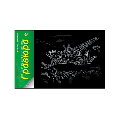 Гравюра Рыжий кот Военный самолет, в пакете с ручкой (Г-4893) серебристая основа