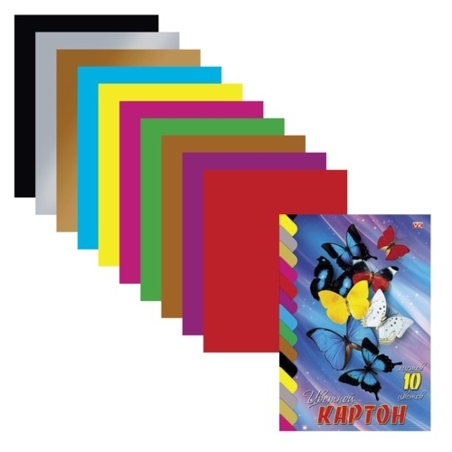 Цветной картон VK Бабочки Hatber, A4, 10 л., 10 цв.