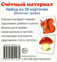 Счетный материал. Набор из 20 карточек. Белочки, грибы