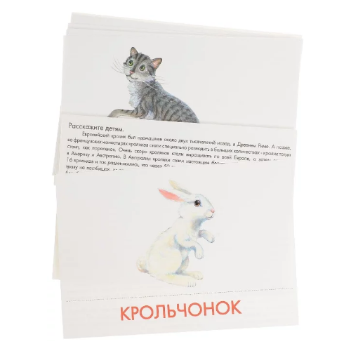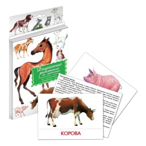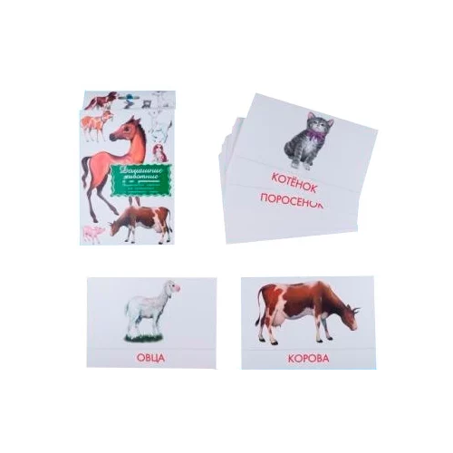 Набор карточек Маленький гений Домашние животные и их детёныши 21x15 см 16 шт.