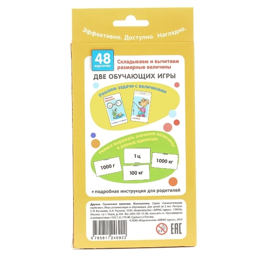 Набор карточек Айрис-Пресс Занимательные карточки. Друзья. Сравнение величин 10x6 см 48 шт.