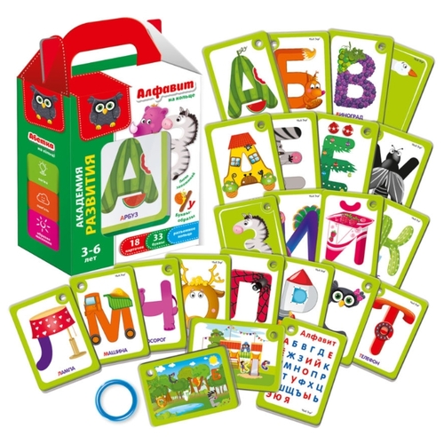 Набор карточек Vladi Toys Академия развития. Алфавит на кольце 13.8x9.9 см 18 шт.