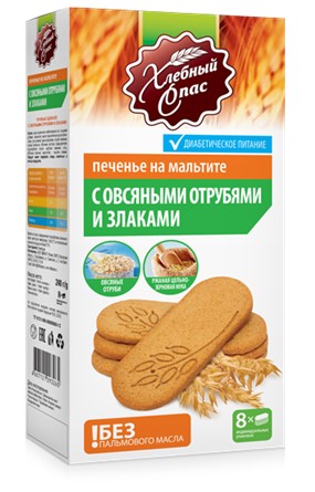 Печенье "Хлебный Спас" с овсяными отрубями и злаками на мальтите, 240г