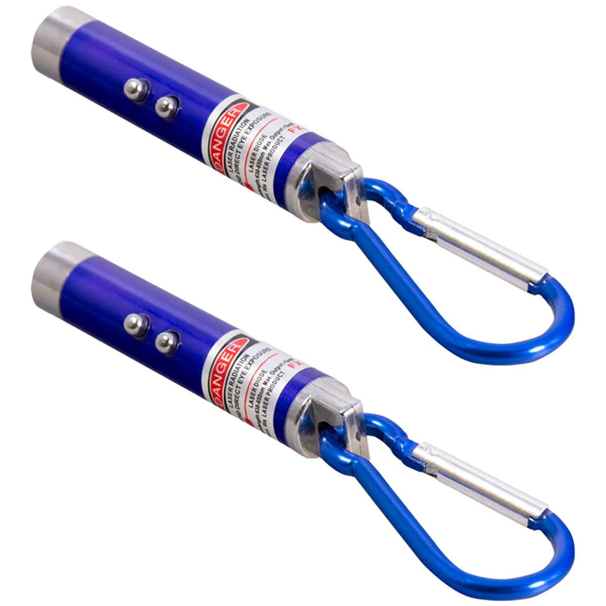 Комплект из 2 шт. лазерных указок с фонариком и карабином синие