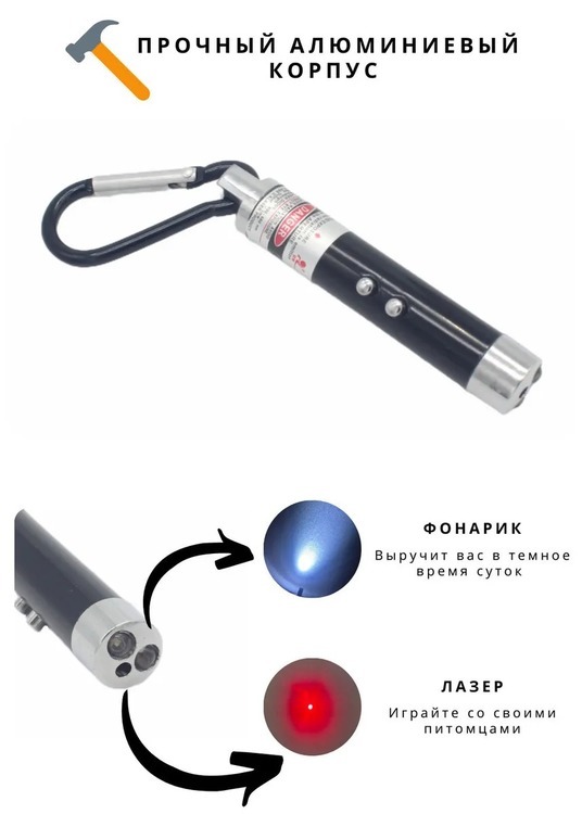 Лазерная указка с фонариком и брелком Лазерная указка для животных