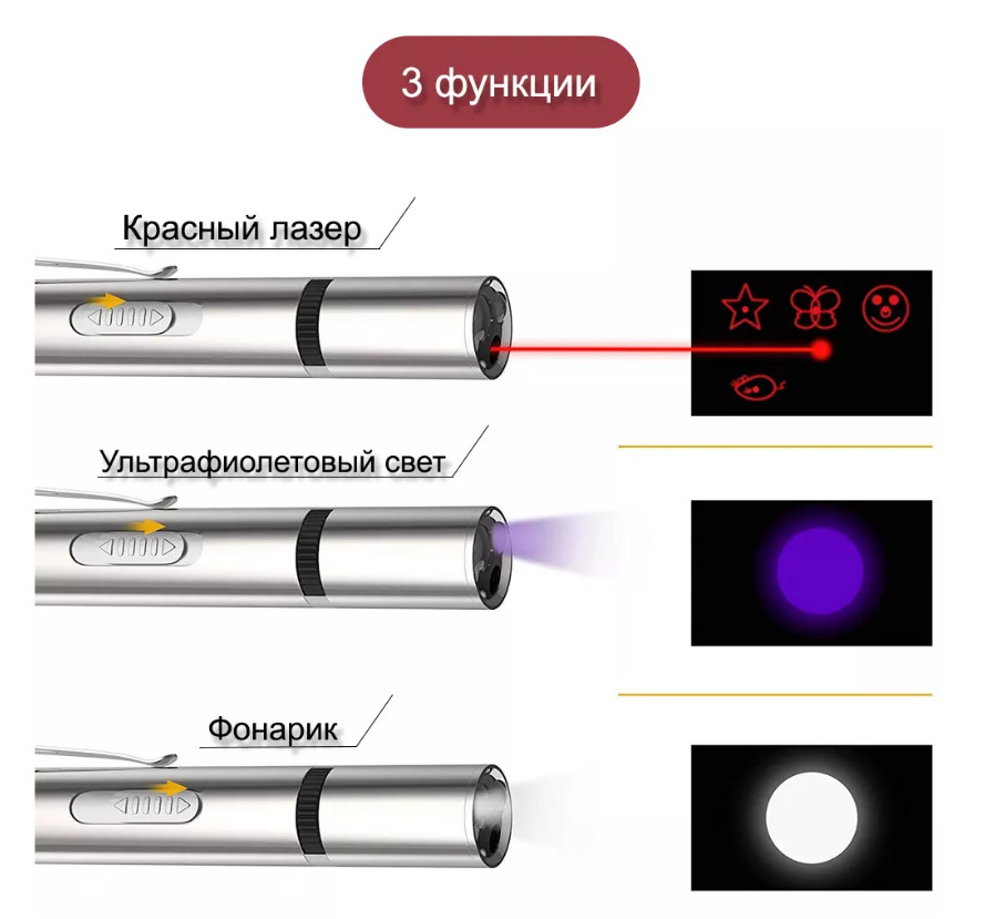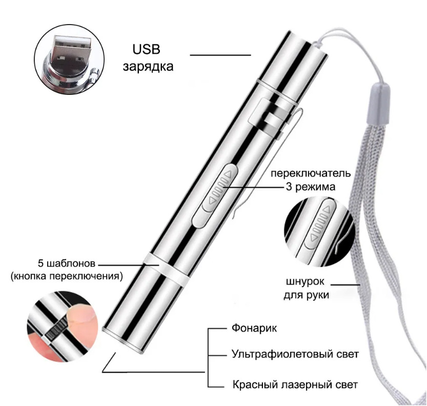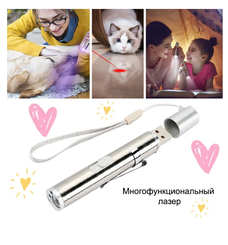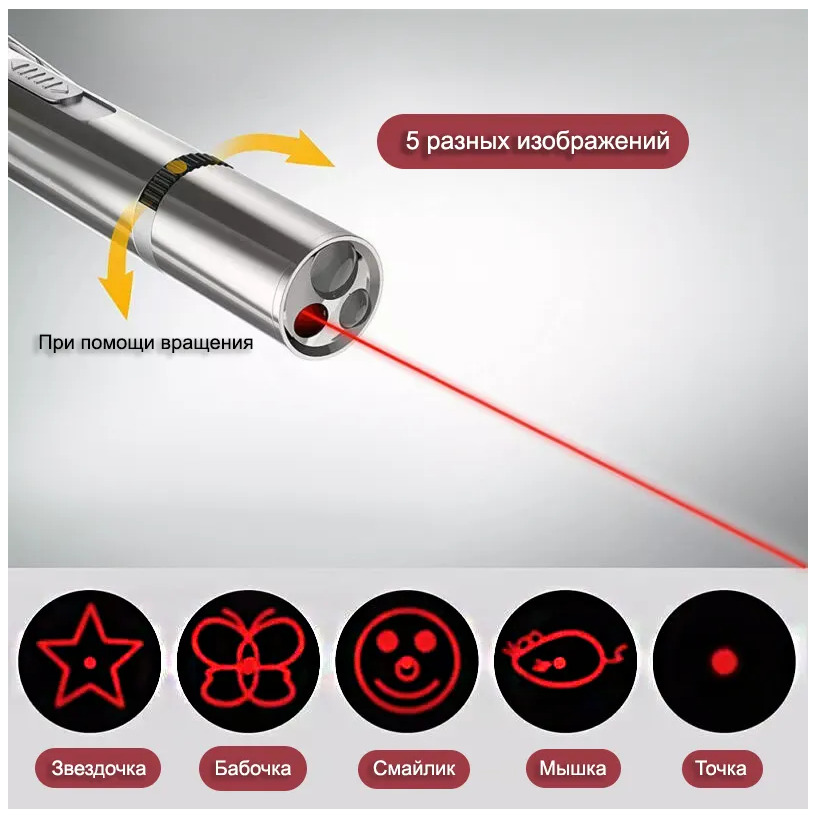 Игрушка для животных "лазерная указка"/ лазер/ для кошек, собак/ дразнилка/ фонарик/ 2в1/