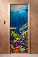 Дверь для сауны DoorWood (Дорвуд) 80x190 Престиж Фотопечать A010 правая