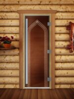 Дверь для сауны DoorWood (Дорвуд) 60x190 Престиж (с рисунком) Арка правая (бронза)