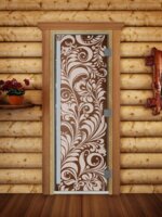 Дверь для сауны DoorWood (Дорвуд) 60x180 Основная серия Весна цветы (бронза)