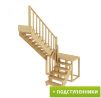 Деревянная межэтажная лестница ЛЕС-05-3 универсальная (поворот 90 градусов, высота 3 м)