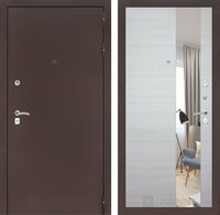 Входная дверь Classic антик медный с Зеркалом - Акация светлая горизонтальная