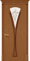 Межкомнатная дверь Браво Флора со стеклом орех шпонированная, остекление Витраж / 700x2000 / Полотно