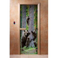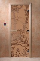 Дверь для сауны DoorWood (Дорвуд) 70x200 Основная серия Мишки в лесу (бронза матовое)