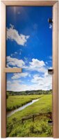 Дверь для сауны Банные Штучки с фотопечатью Родные просторы, коробка из хвои