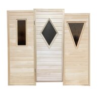 Дверь для бани деревянная из липы с тремя окошками (1700х700 мм)