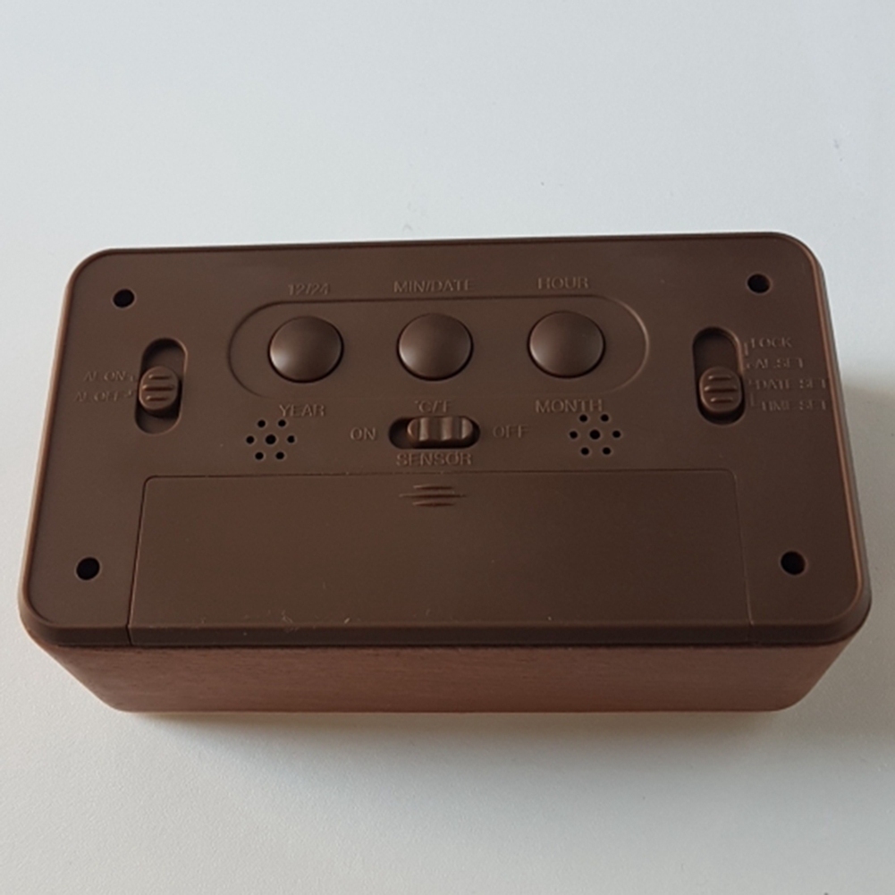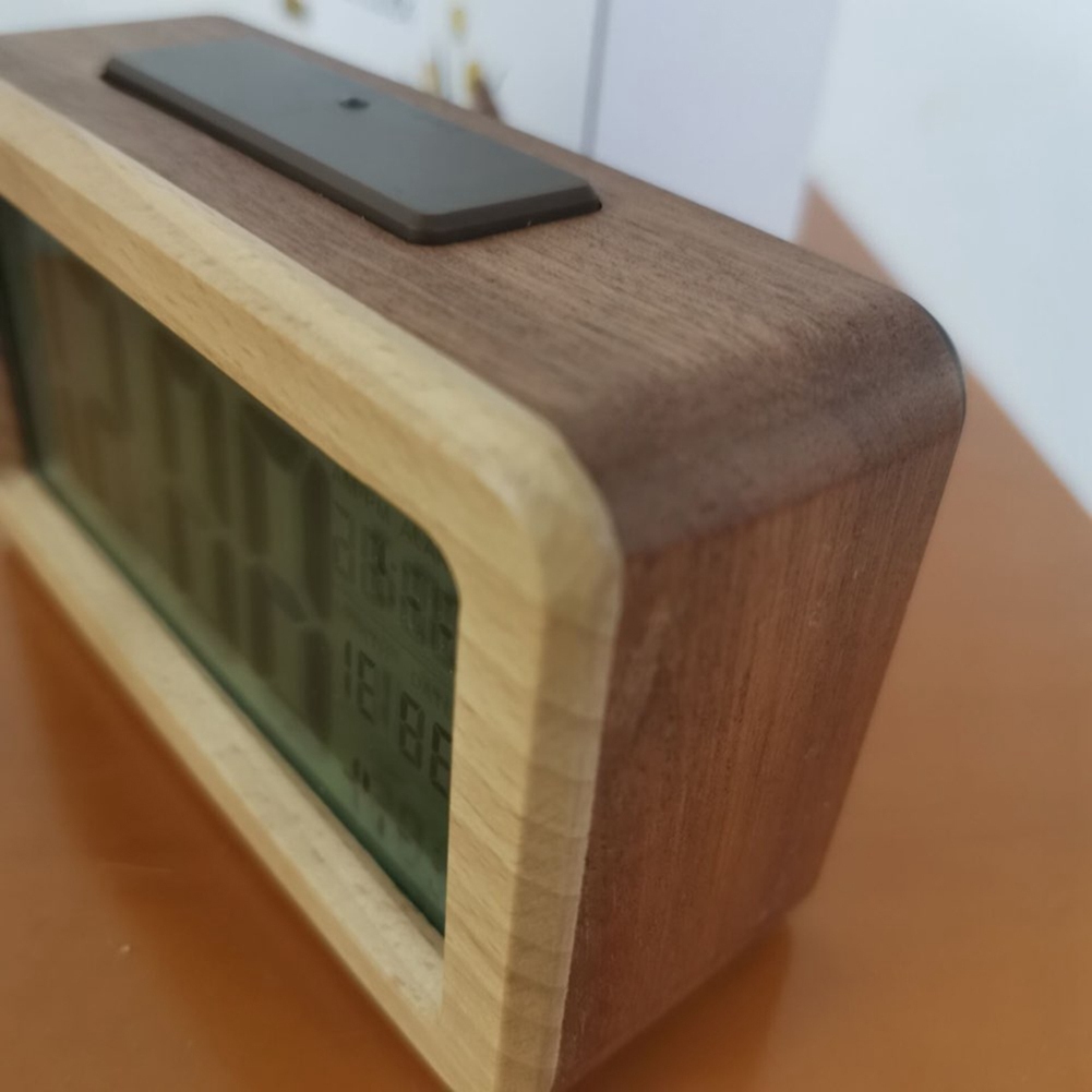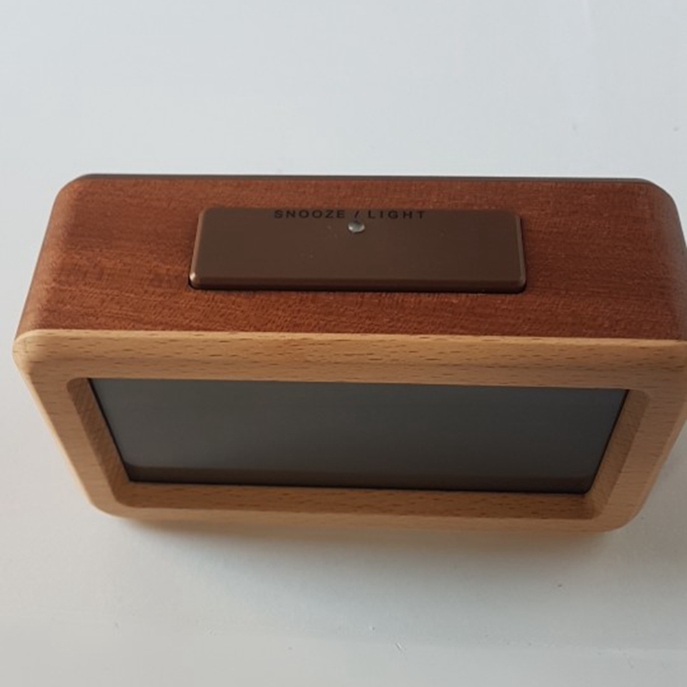 Деревянный цифровой будильник, сенсорный ночник с функцией повтора (коричневый)