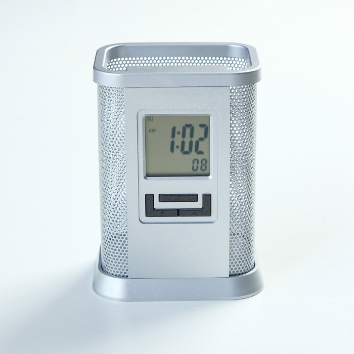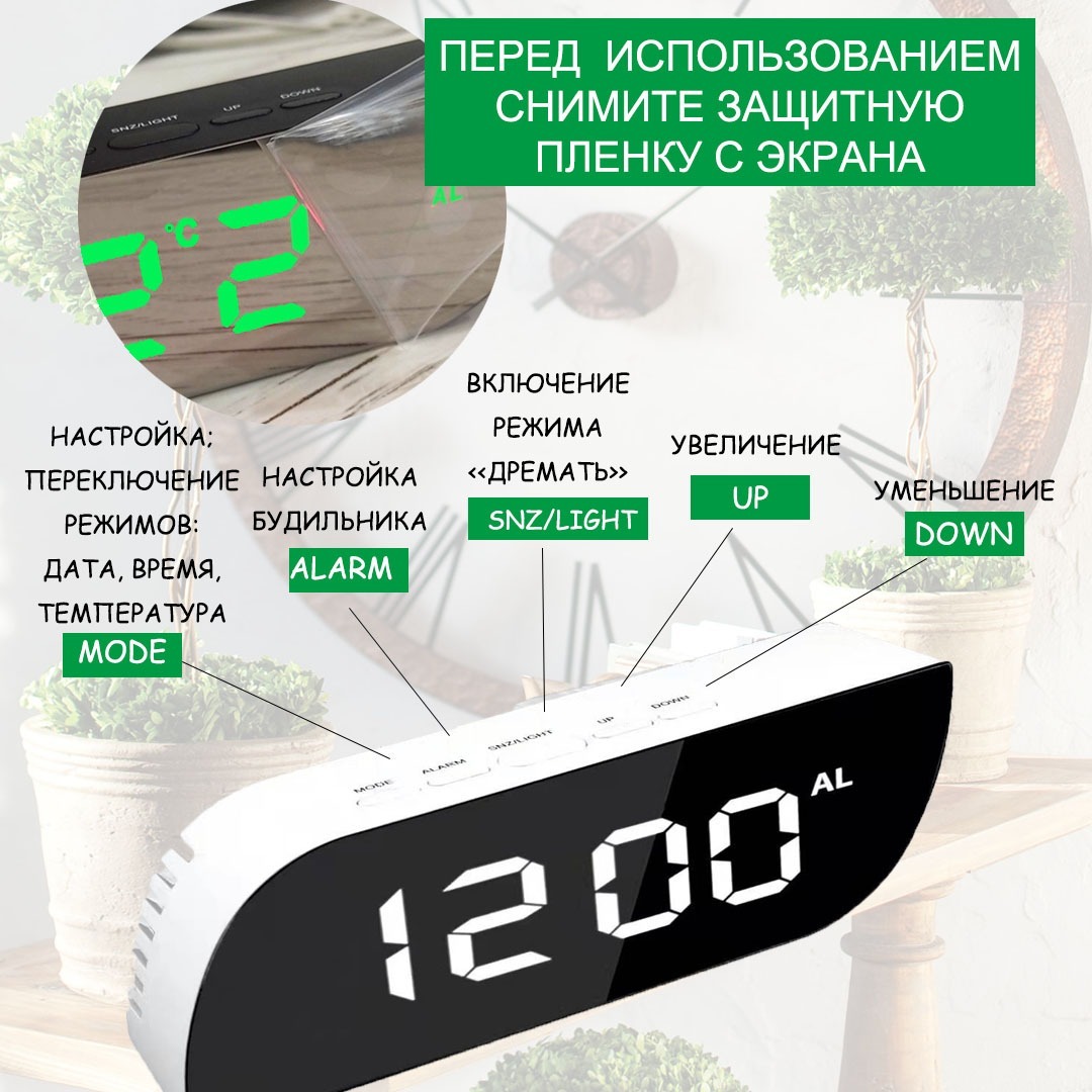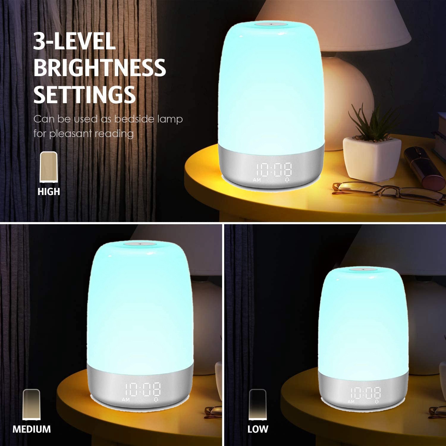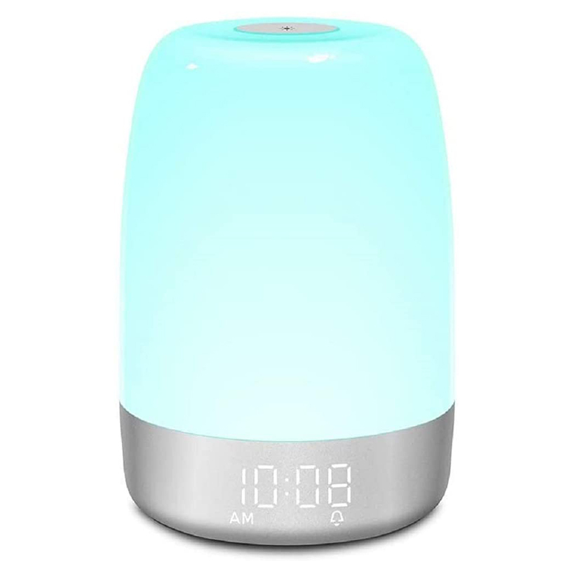Деревянный цифровой будильник, сенсорный ночник с функцией повтора (коричневый)