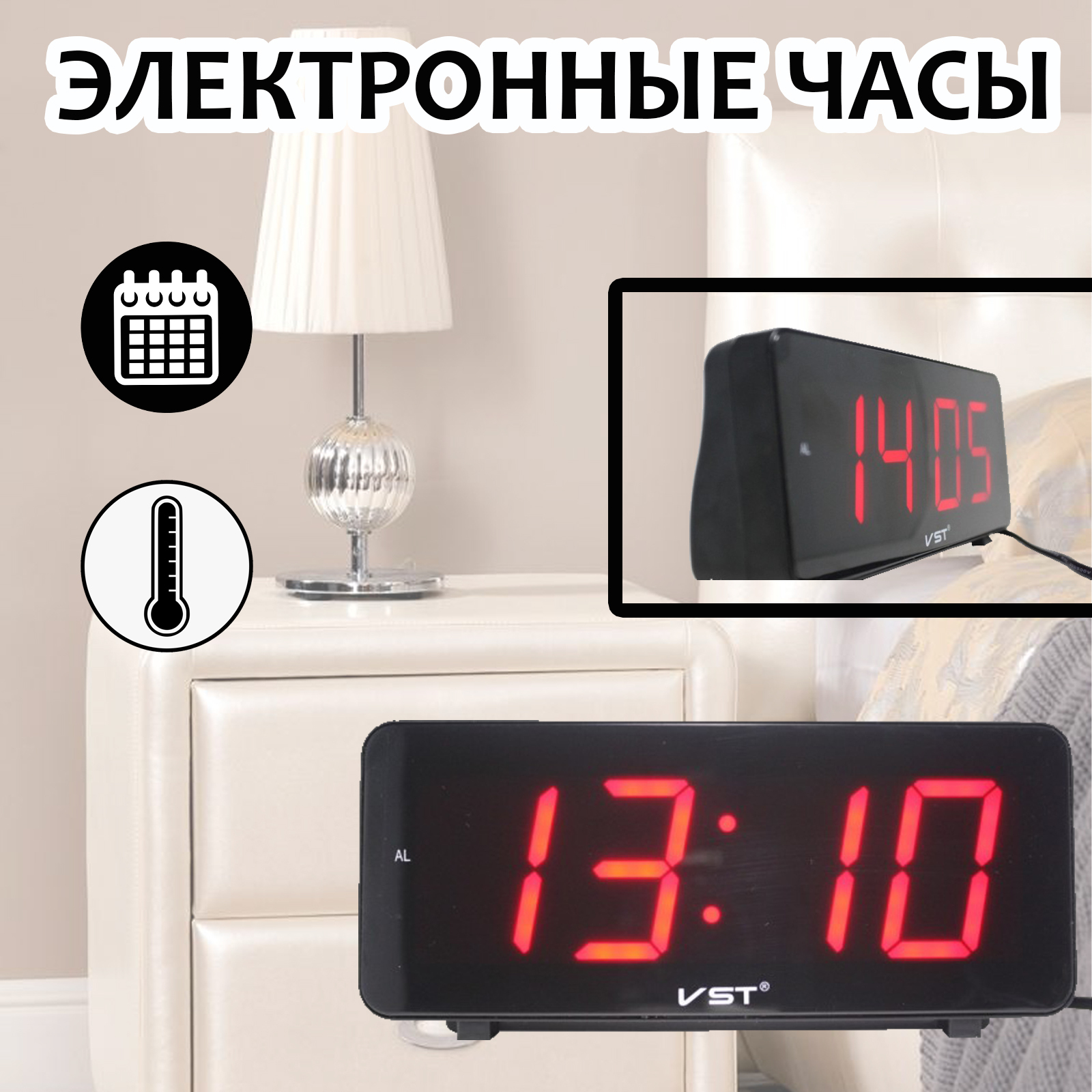 Настольные электронные часы VST-763-1 (Черный с красными цифрами). Уцененный товар