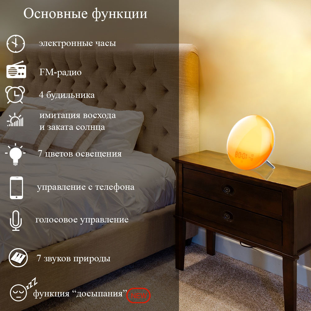 Световой электронный будильник с имитацией восхода солнца и управлением с телефона, ACA-003