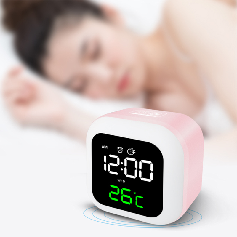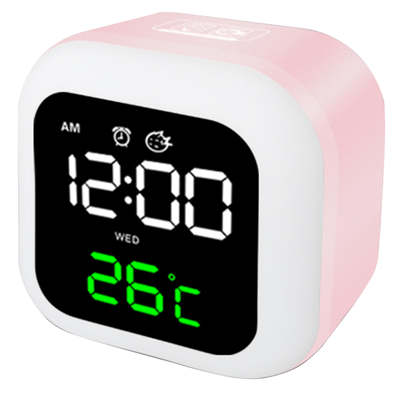 Цифровой будильник в спальне, свет для пробуждения и ночник, розовый