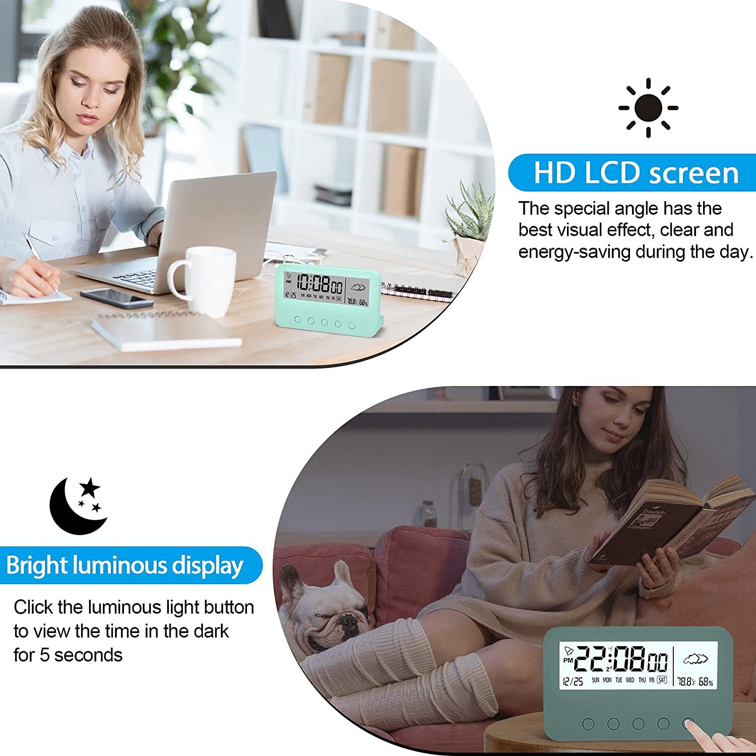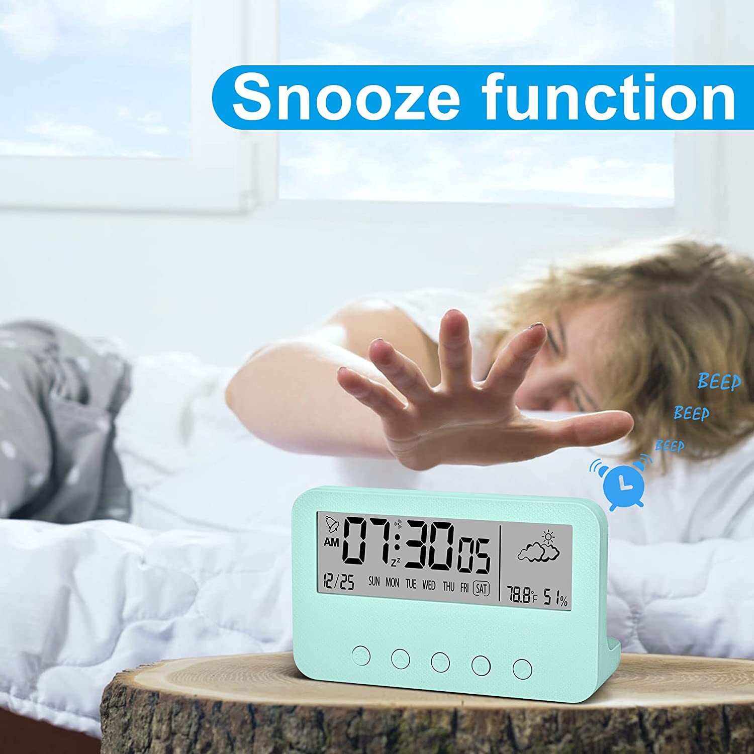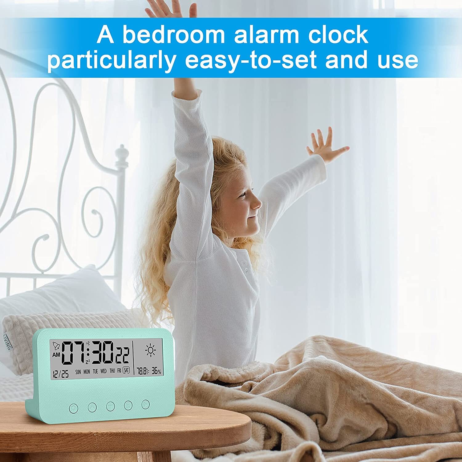 Цифровой будильник для спальни, Настольные часы на батарейках, (зеленый)
