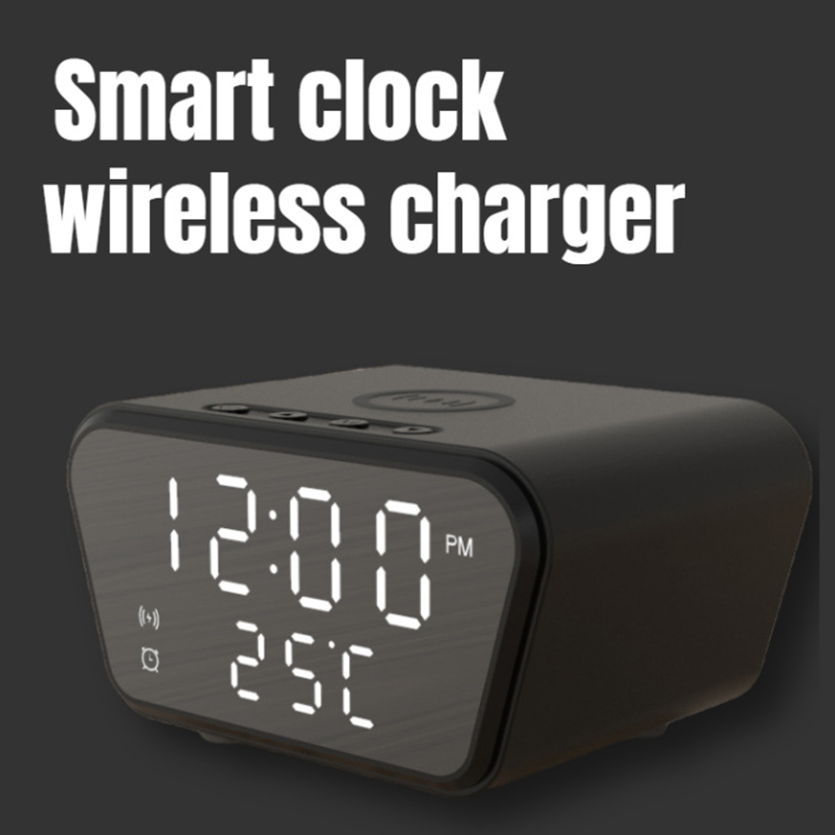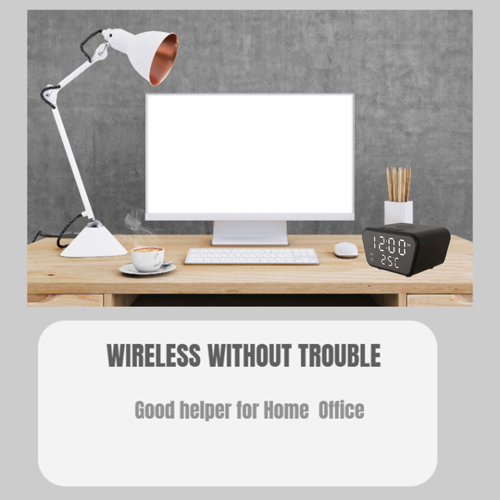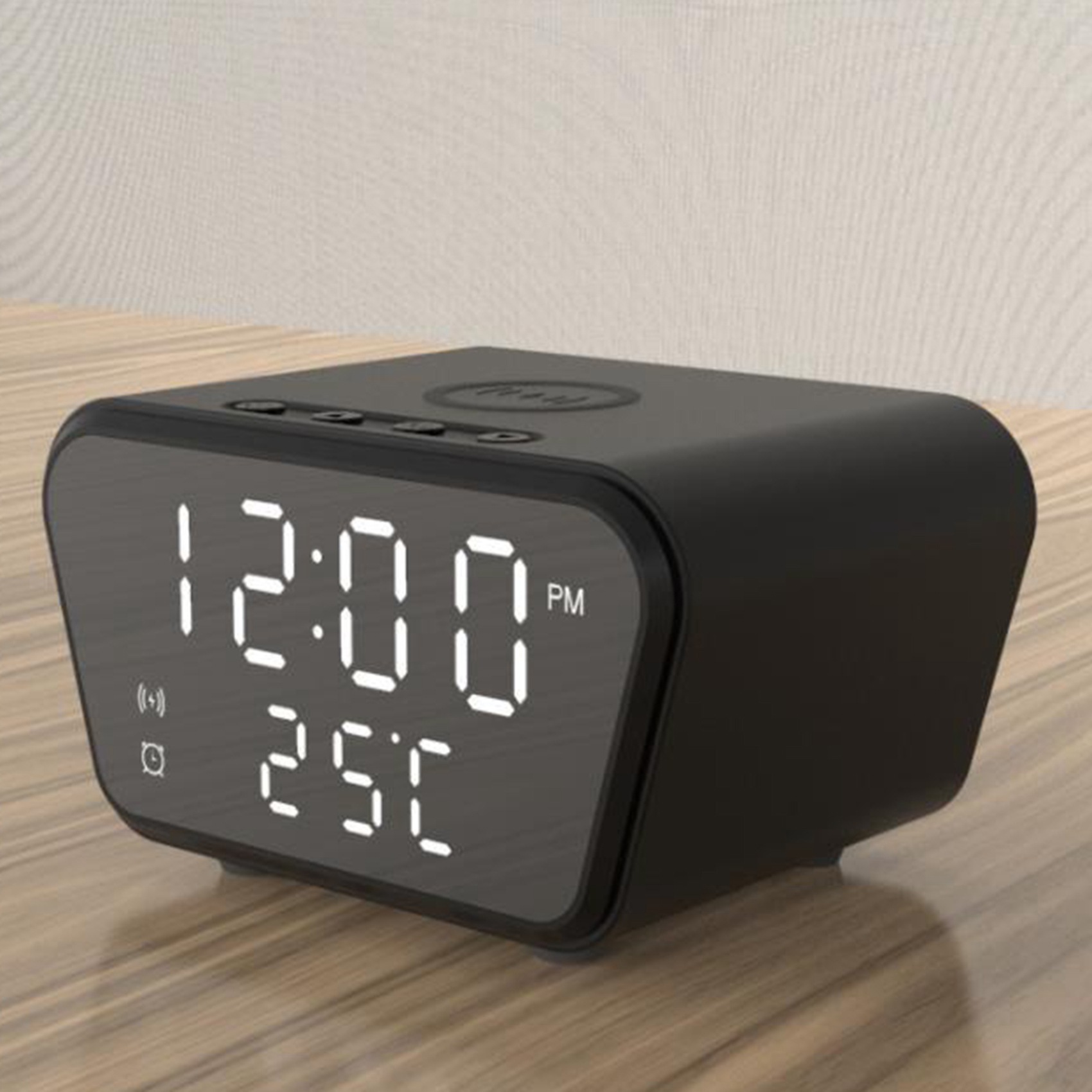 Беспроводное зарядное устройство Будильник Bluetooth-динамик LED Smart черный