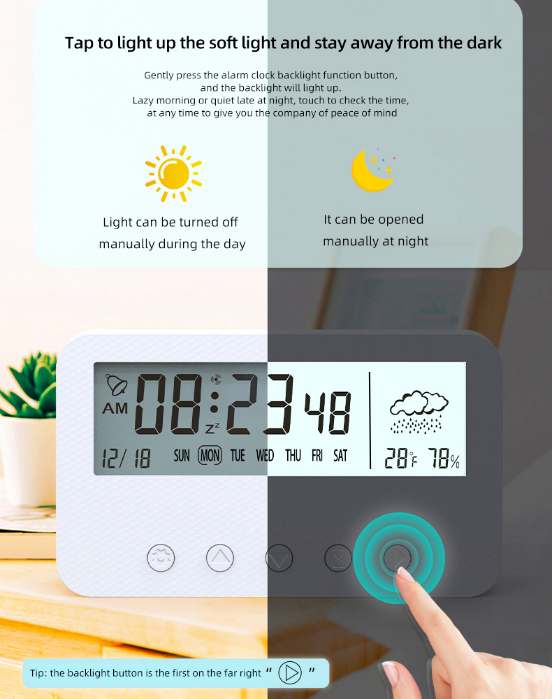 Умный цифровой будильник 12 / 24H Date LED Display Travel Clocks, Blue