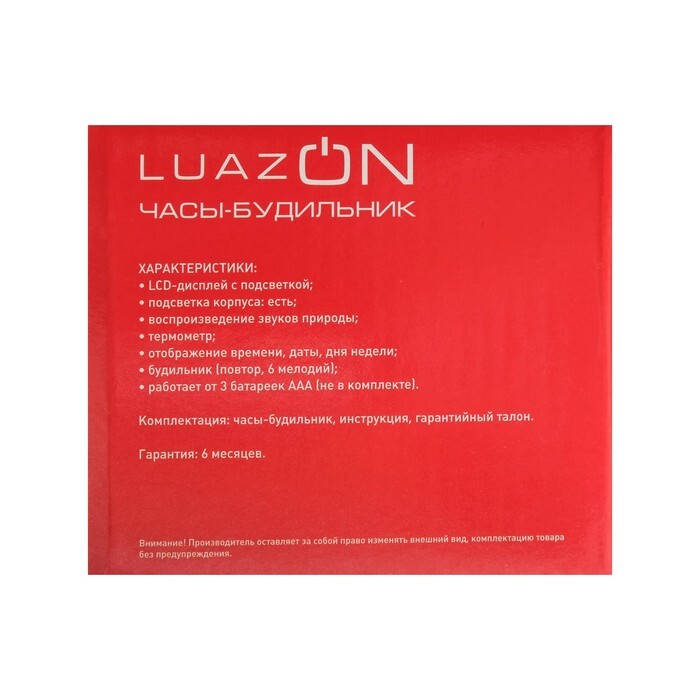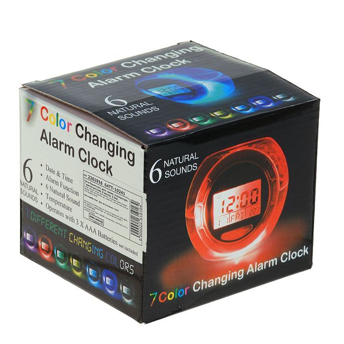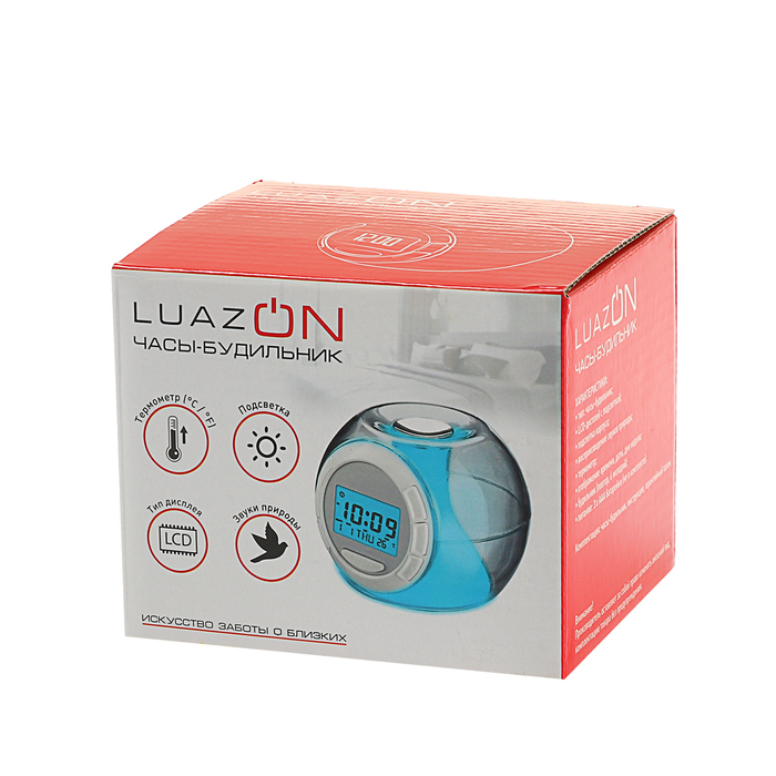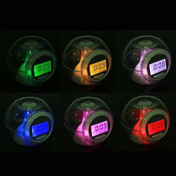 Будильник LuazON LB-06, 7 цветов дисплея, 6 мелодий, прозрачный