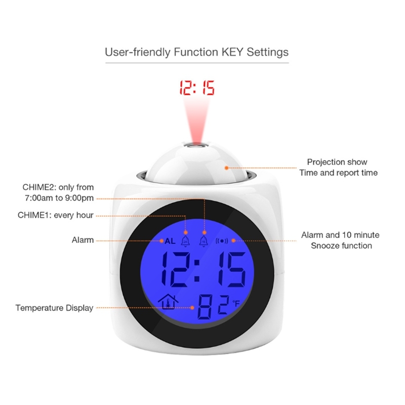 ЖК-будильник, будильник, звонок, будильник, подсветка, светодиодный проектор, белый