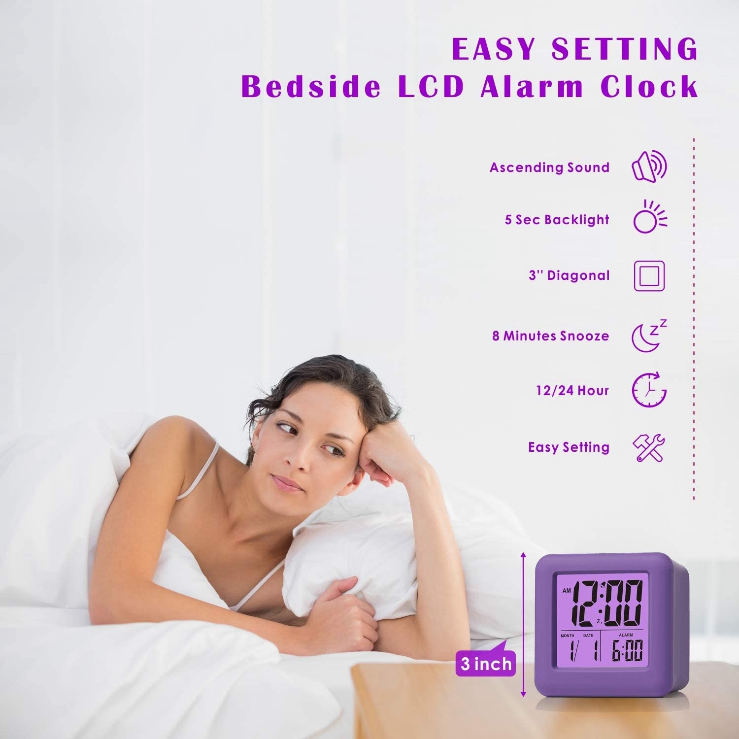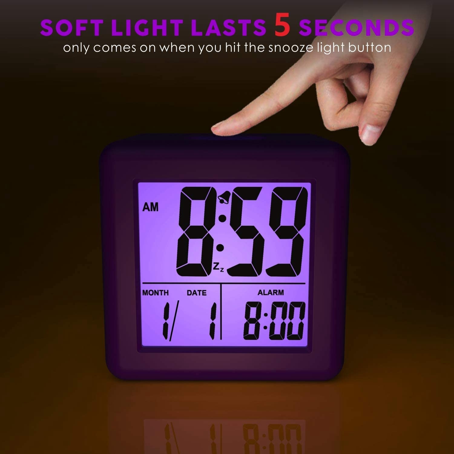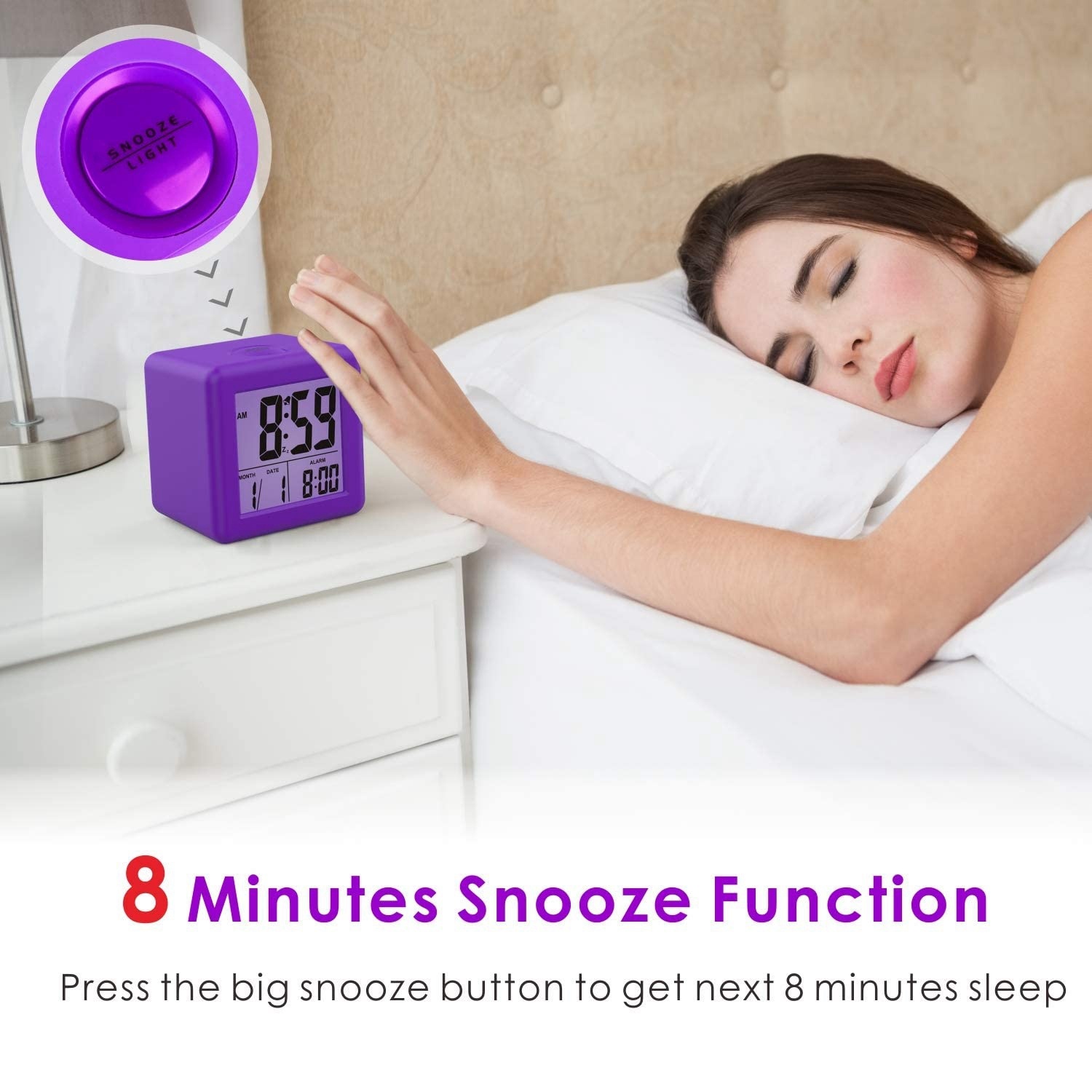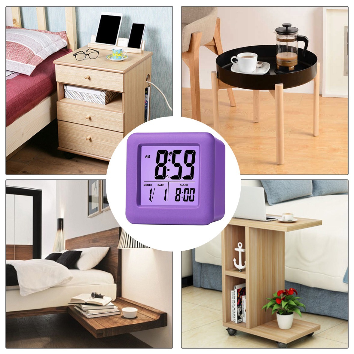 Цифровой будильник со светодиодной подсветкой для спальни, фиолетовый