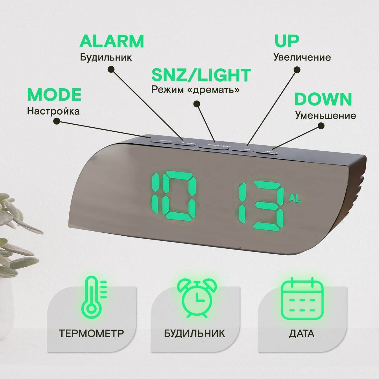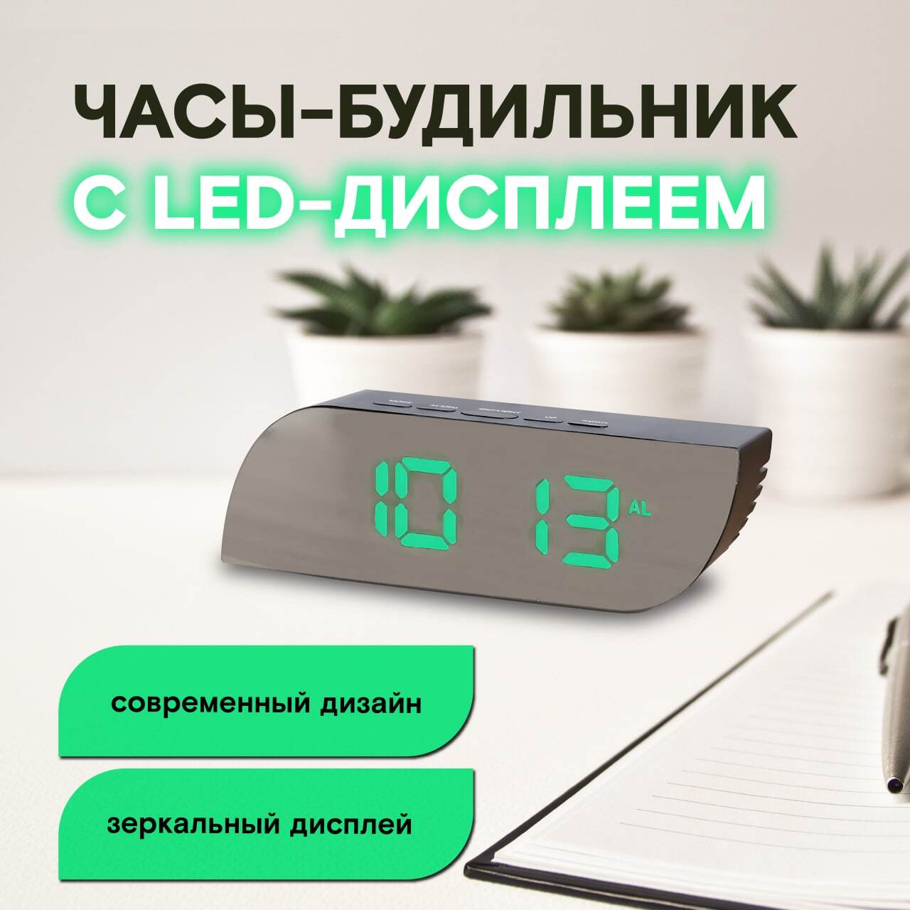 Настольные цифровые часы-будильник VST-861 (Черный, циферблат зеленый)