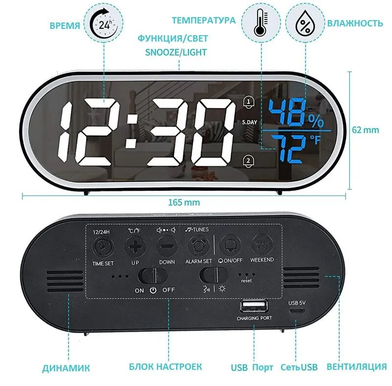 Square Silent прикроватный будильник USB Intelligent Desk Decor, зеленый