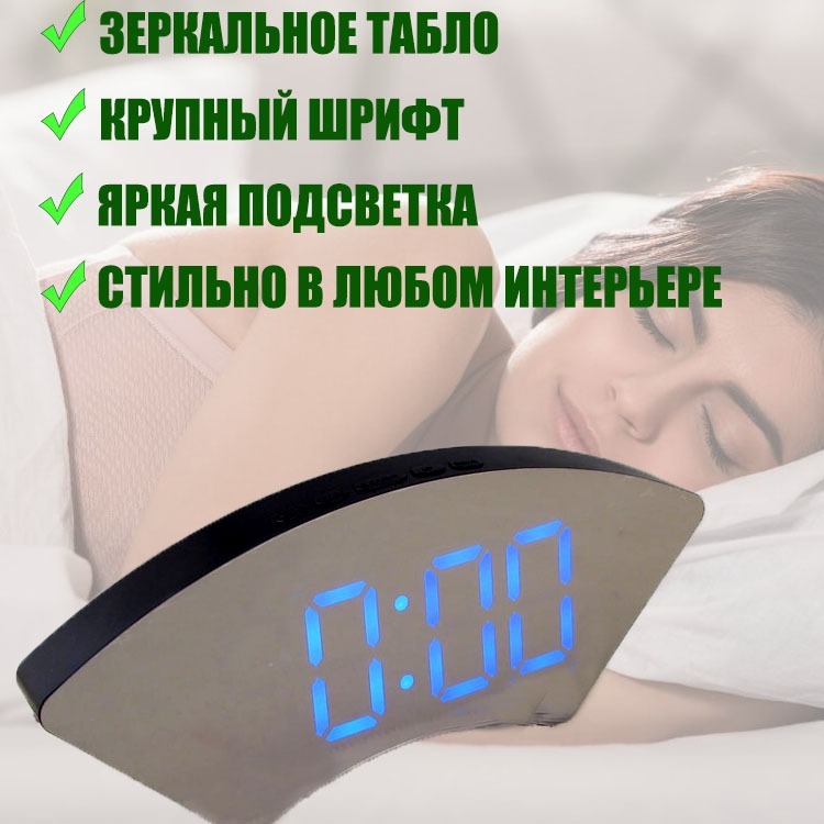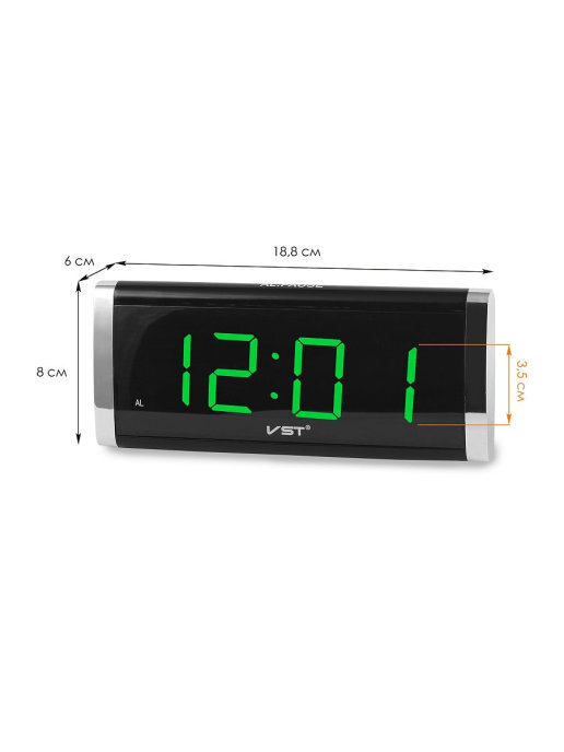 Часы-будильник настольные электронные VST NA-6096/измерение температуры/зеркальный дизайн.