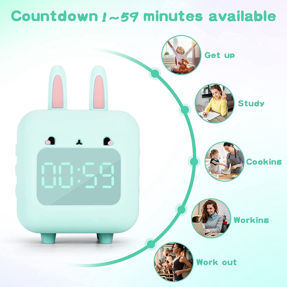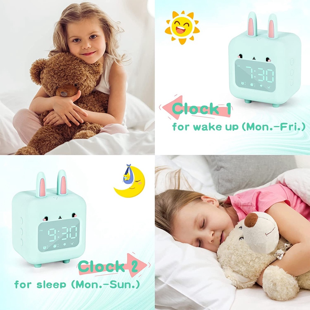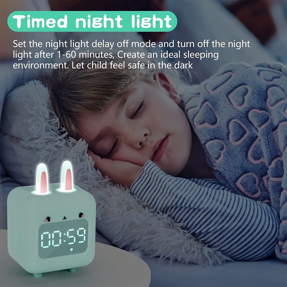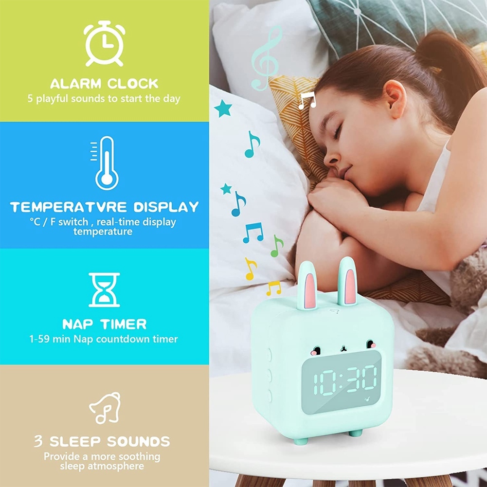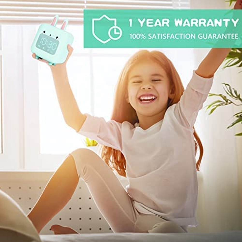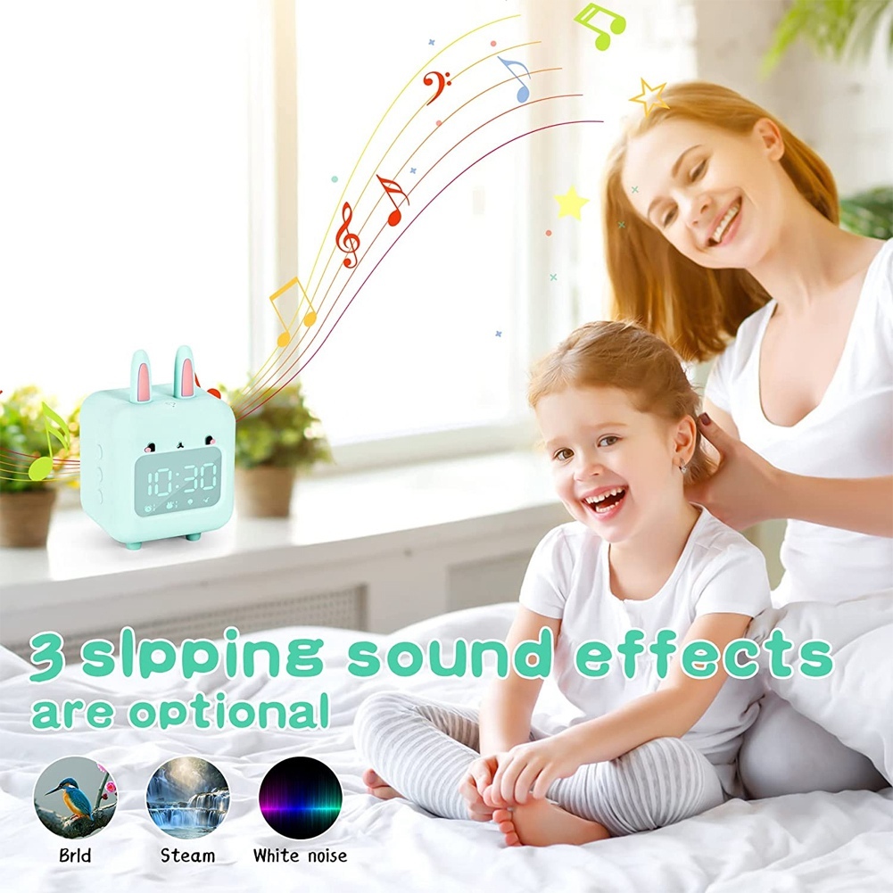Детский будильник, будильник с милым кроликом, белый шум зеленый