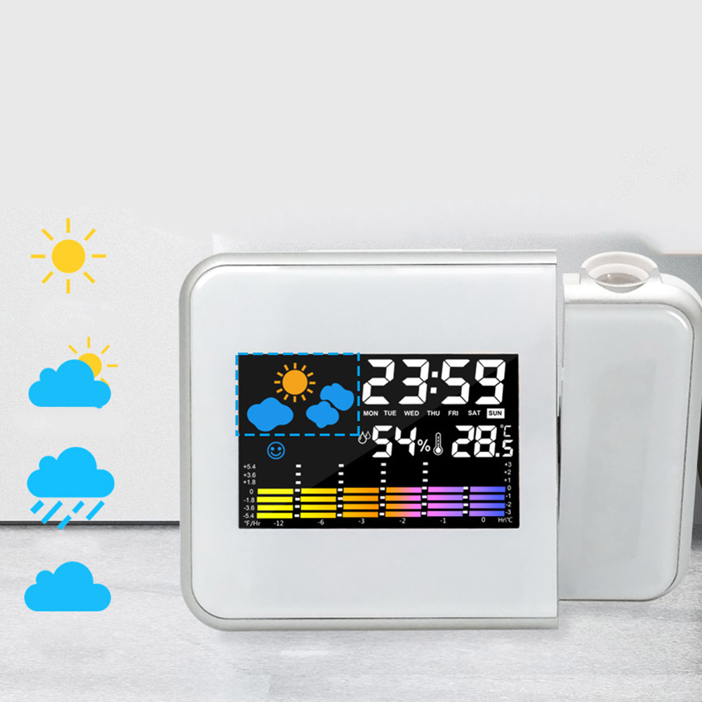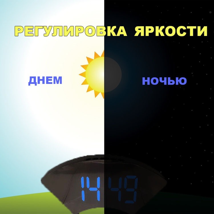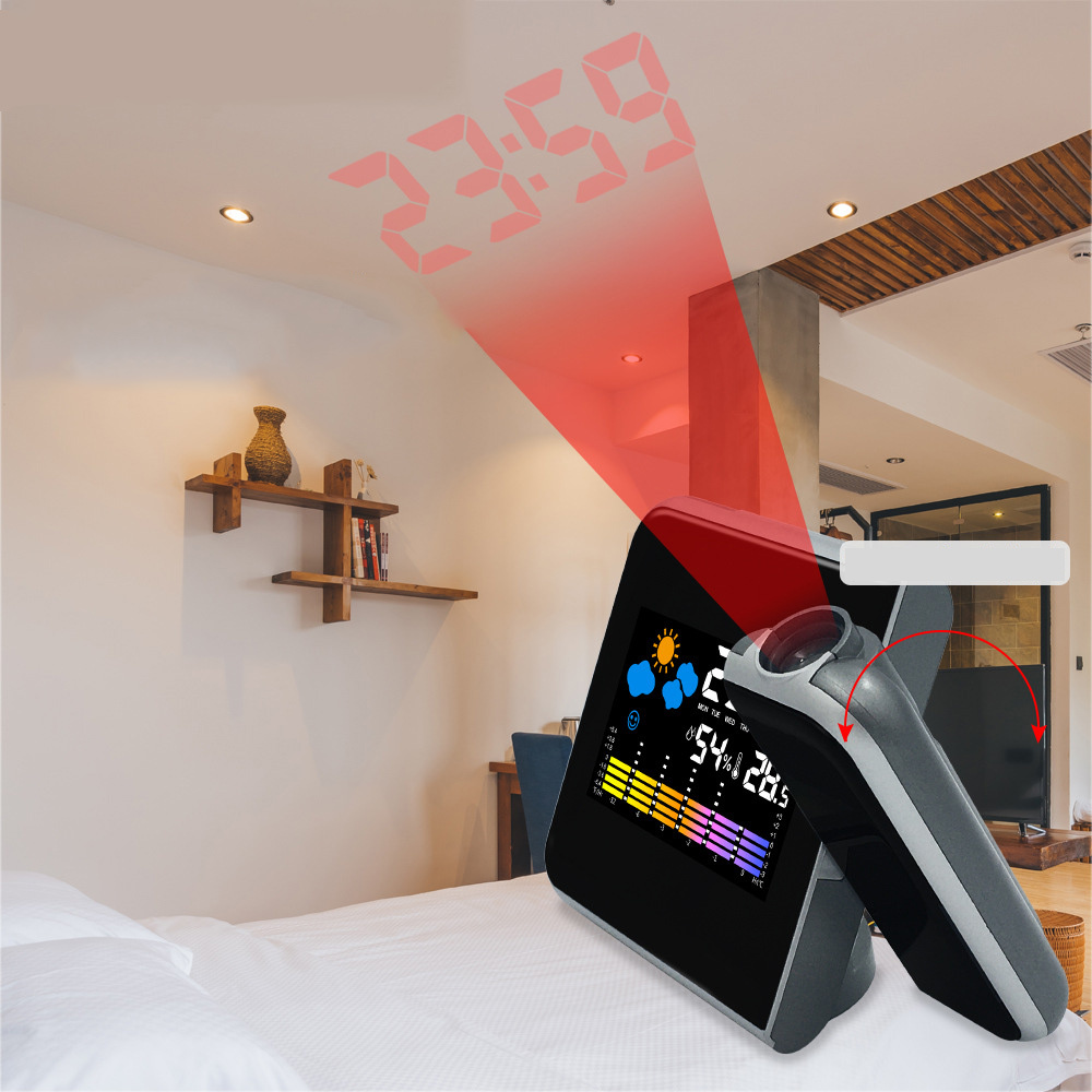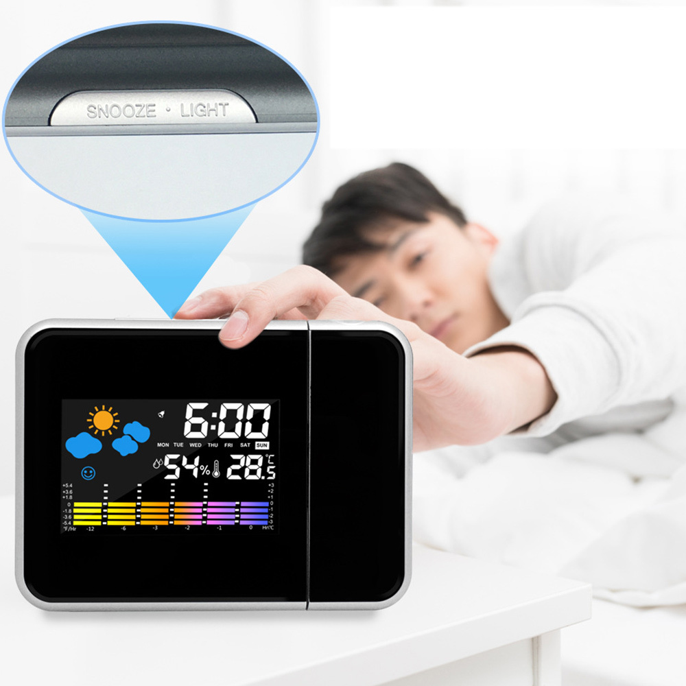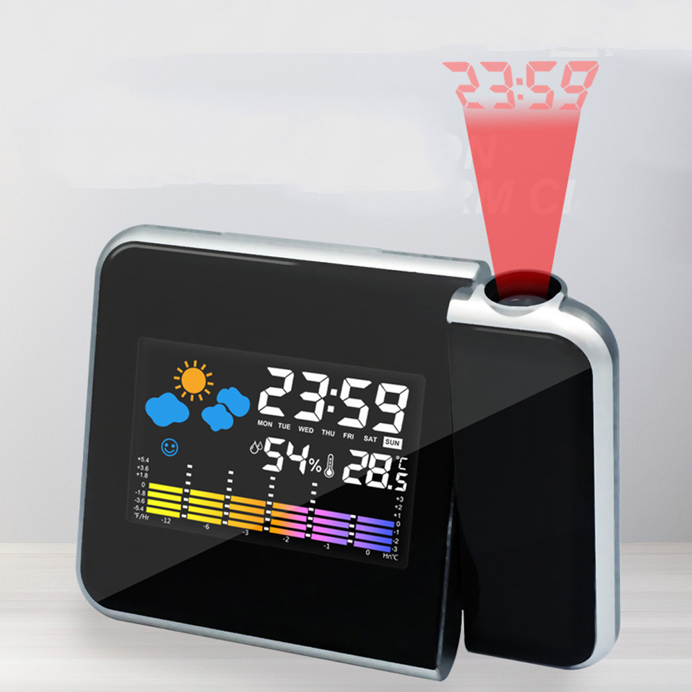 Светодиодный цифровой проекционный будильник с температурой и термометром, черный
