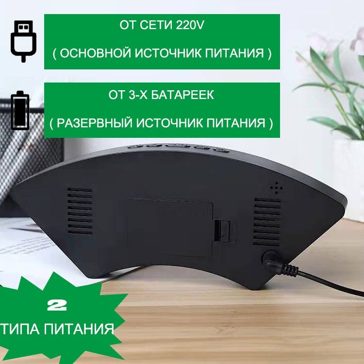 LED часы Настольные зеркальные часы DS-3618L (черный корпус, зеленые цифры)
