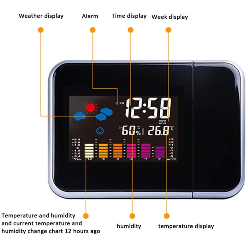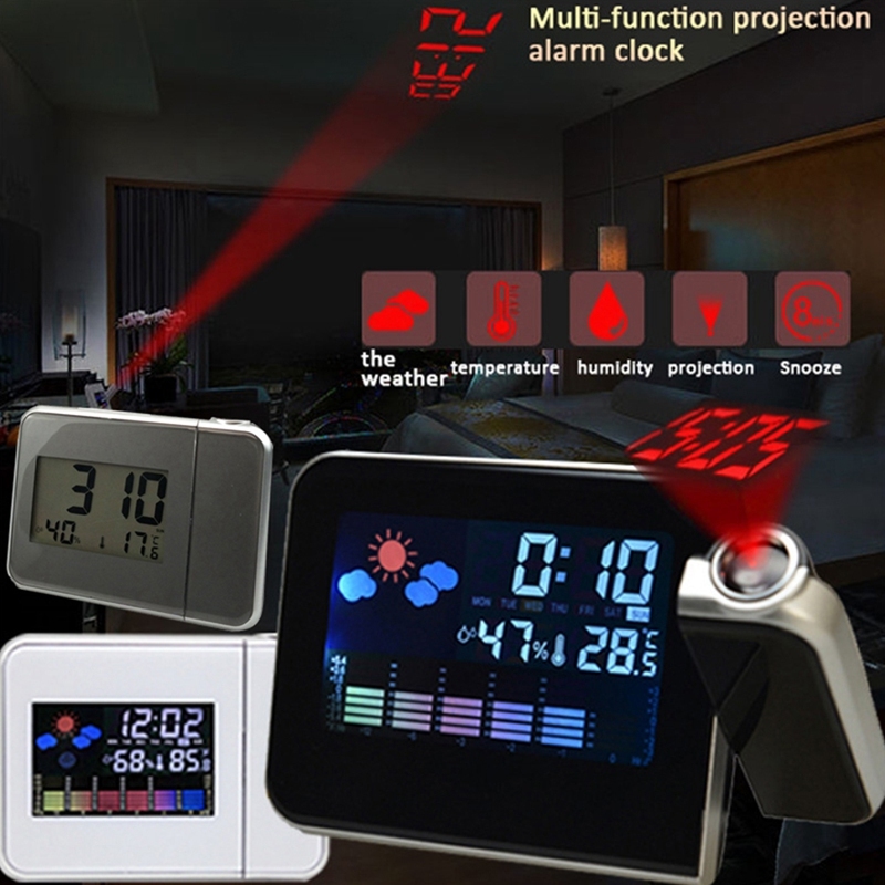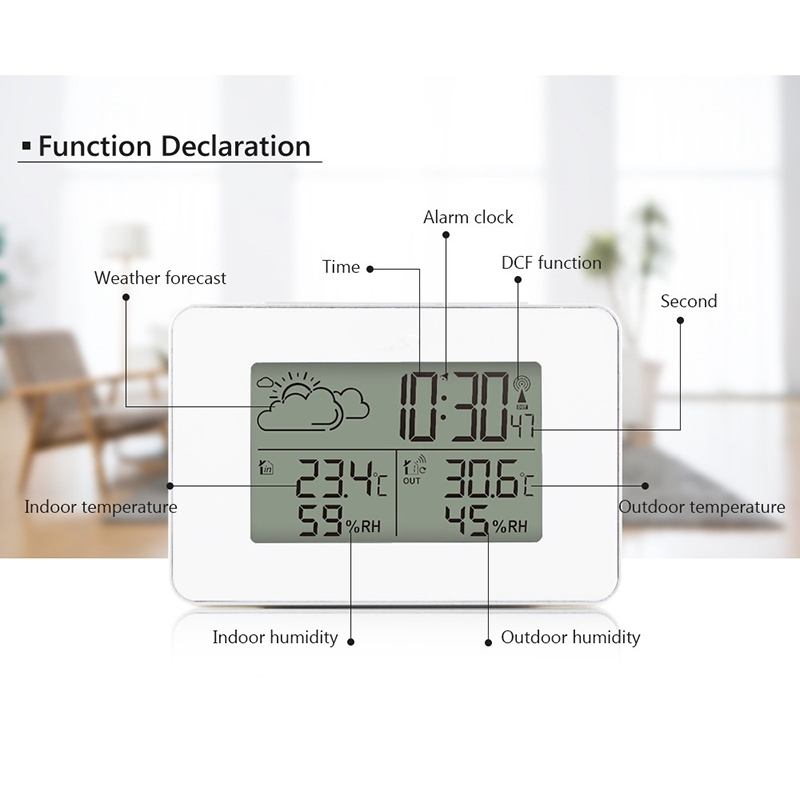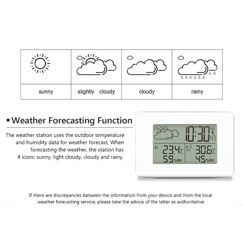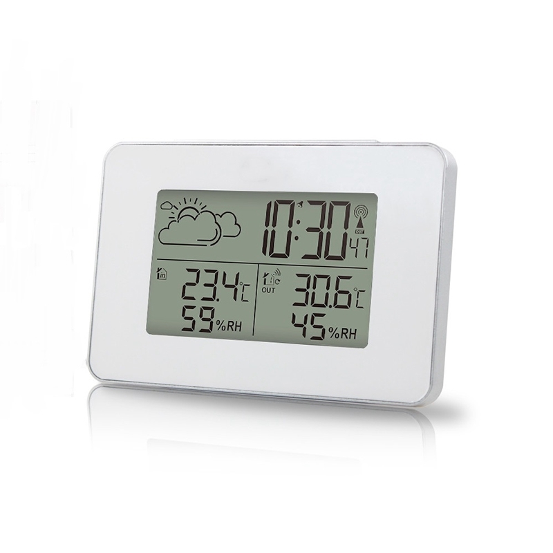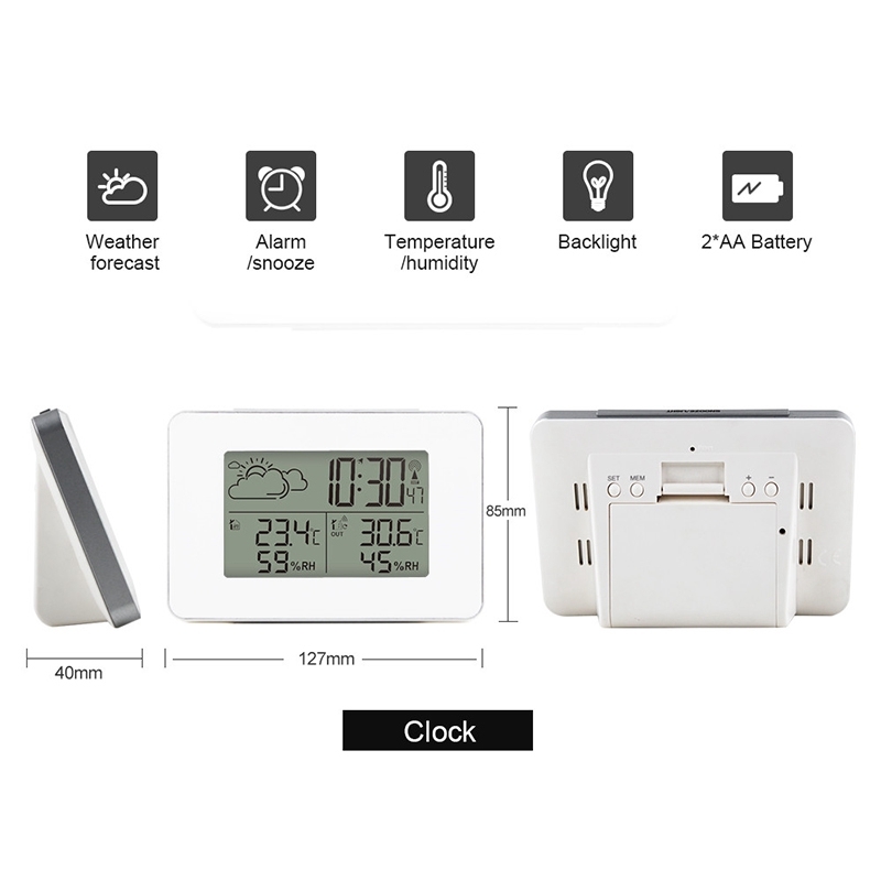 Беспроводной будильник с прогнозом погоды, ЖК-цифровой экран, белый