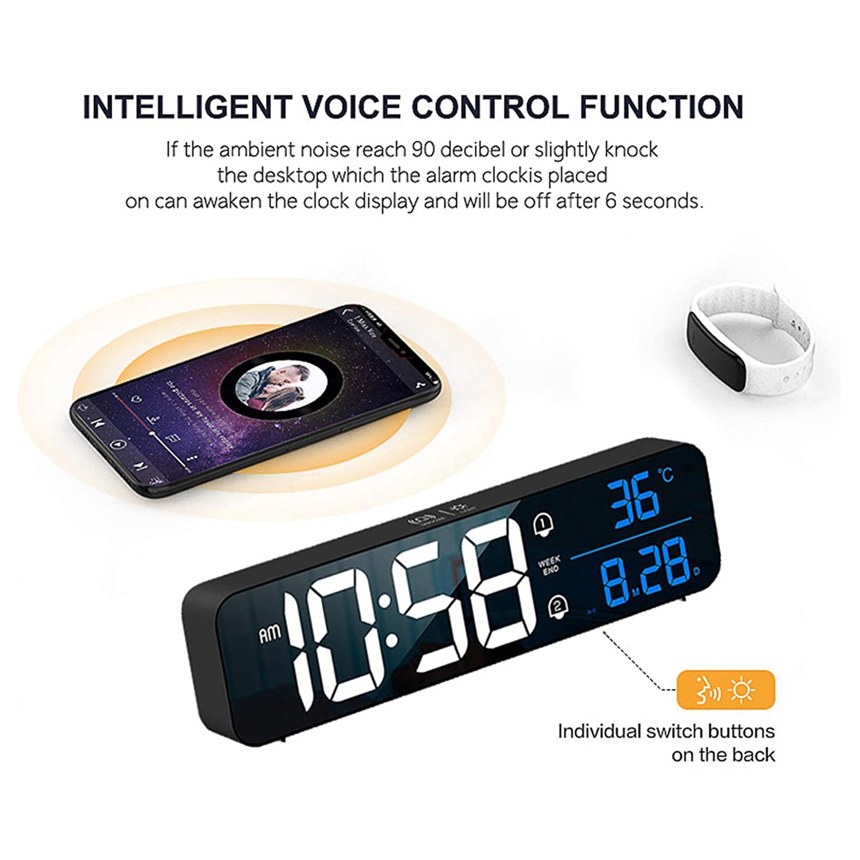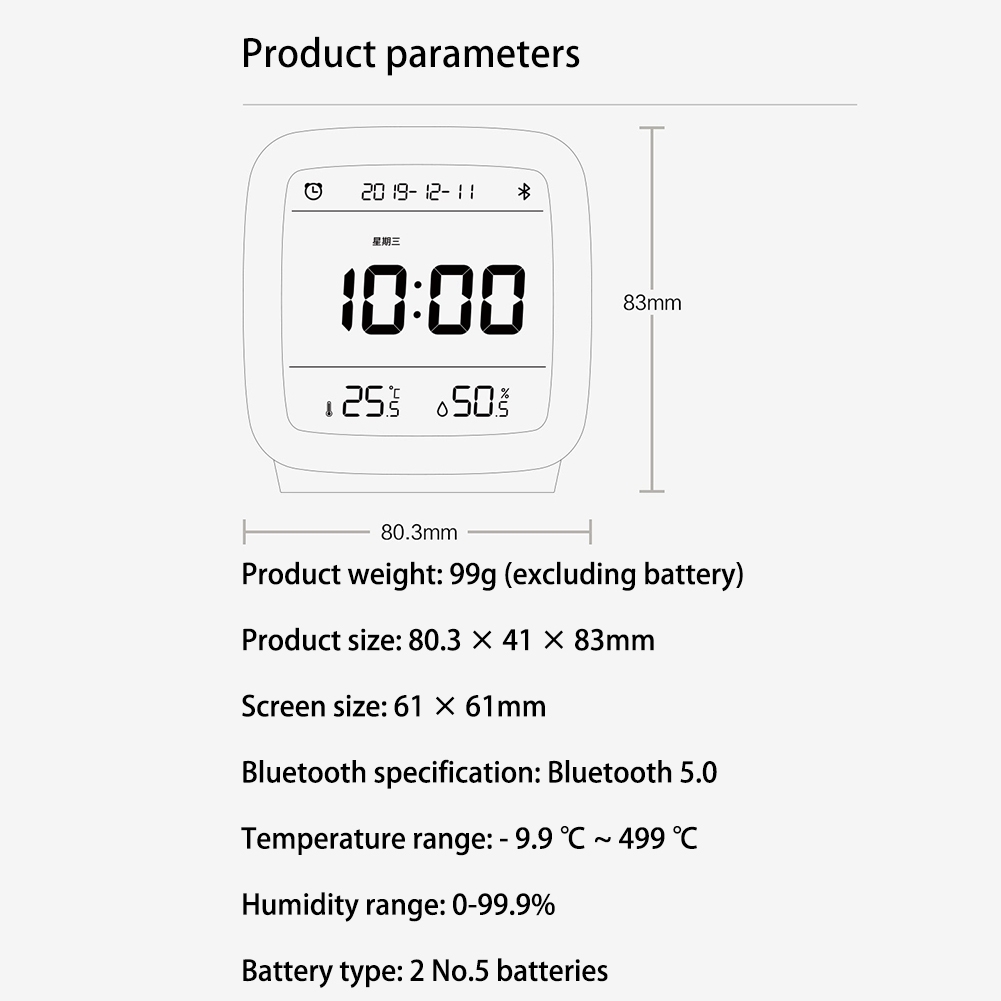ЖК-дисплей с будильником Bluetooth, температура и влажность, умный (белый)