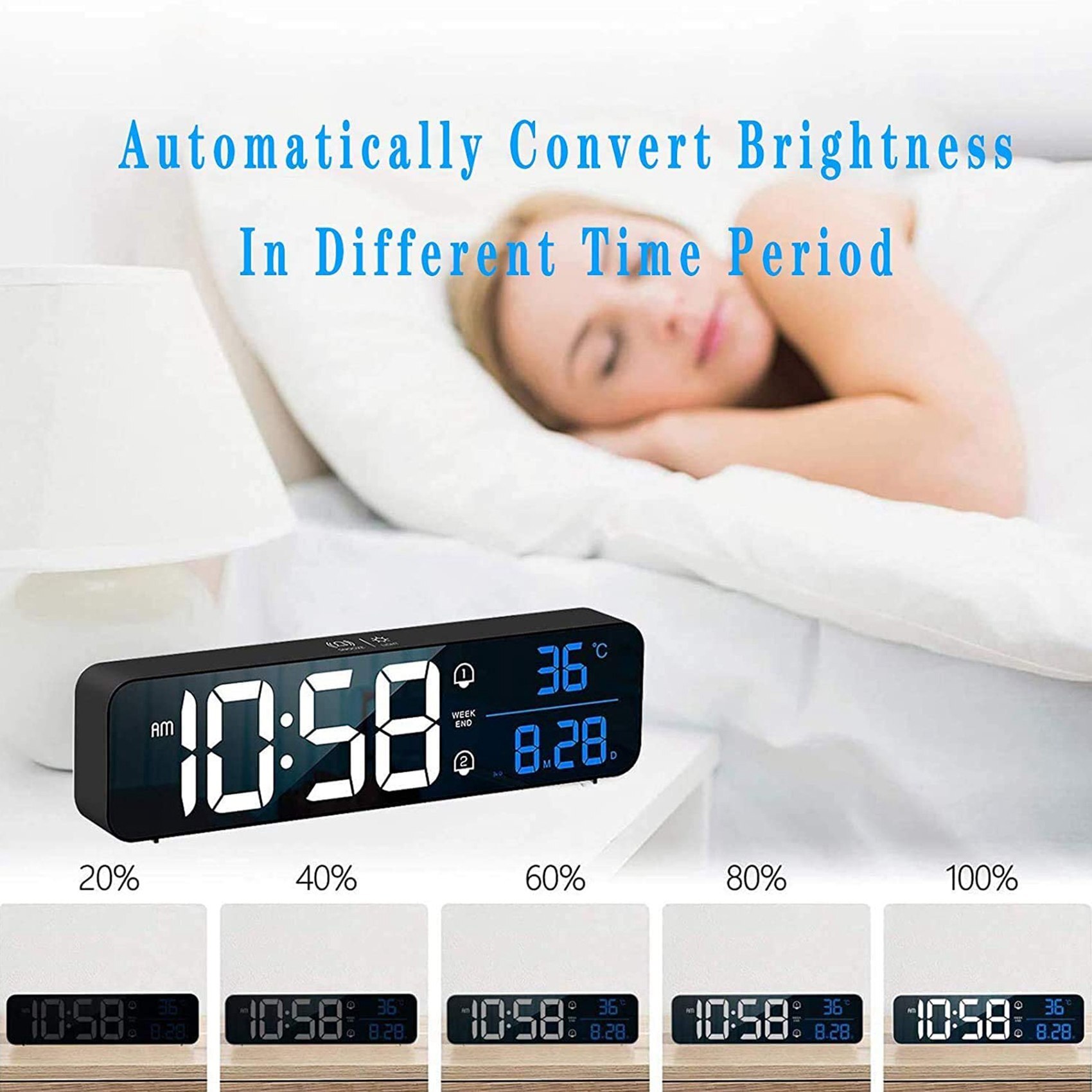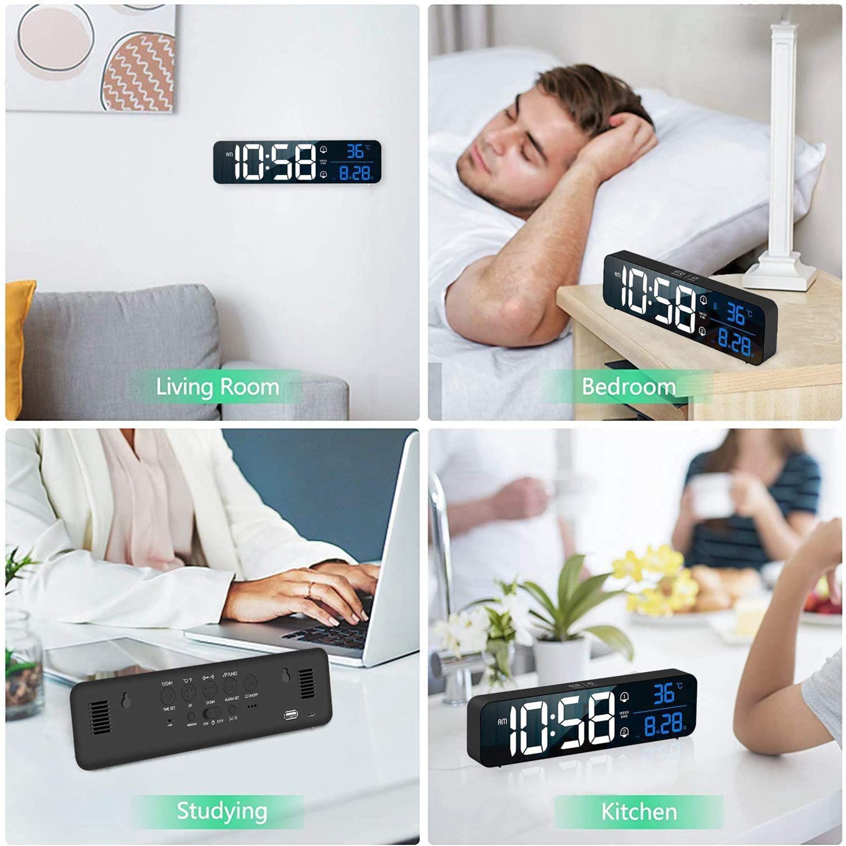 Будильники, Большой светодиод с температурой, Повтор сигнала, USB для спальни, A