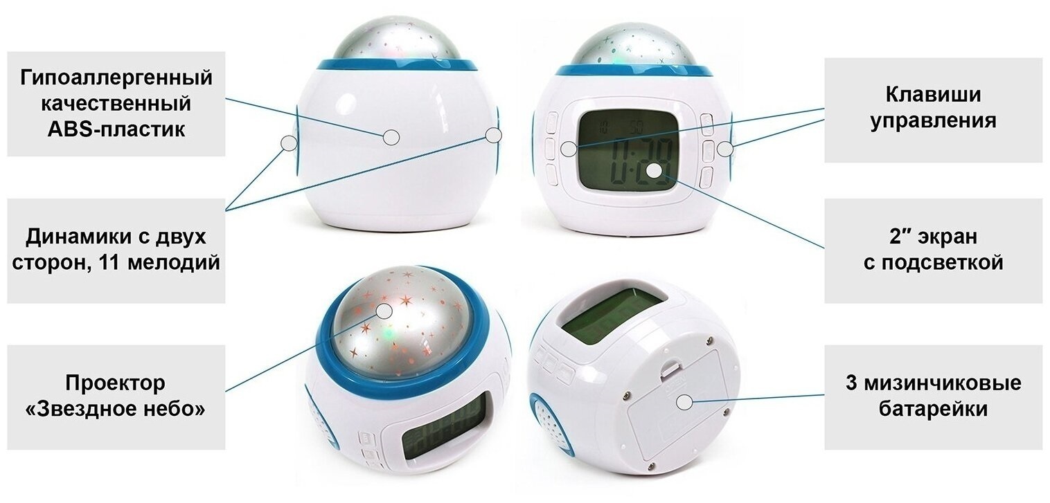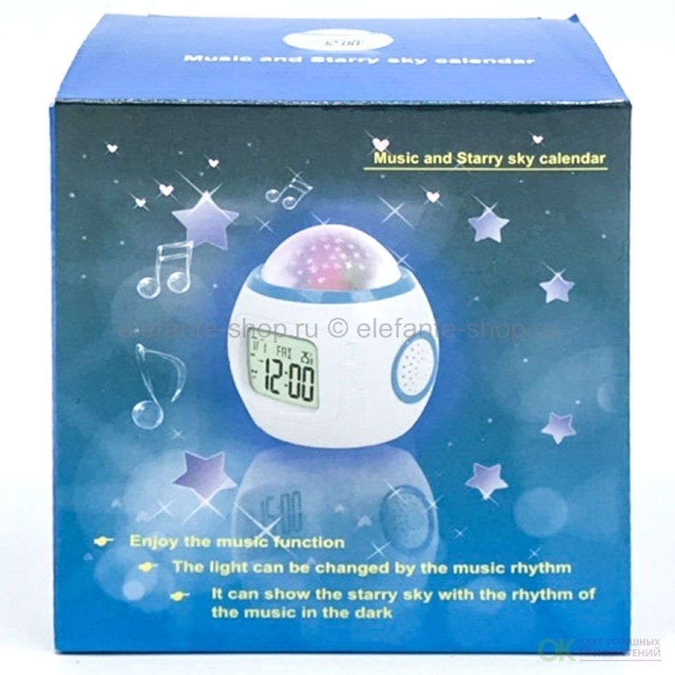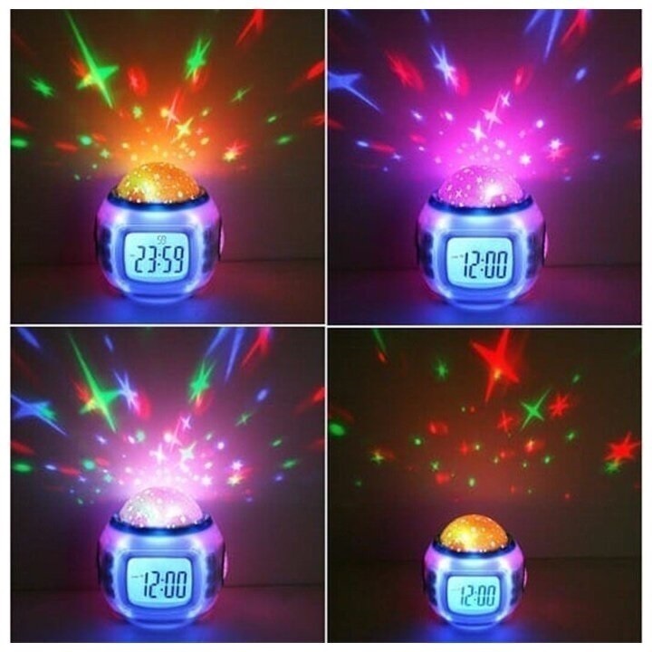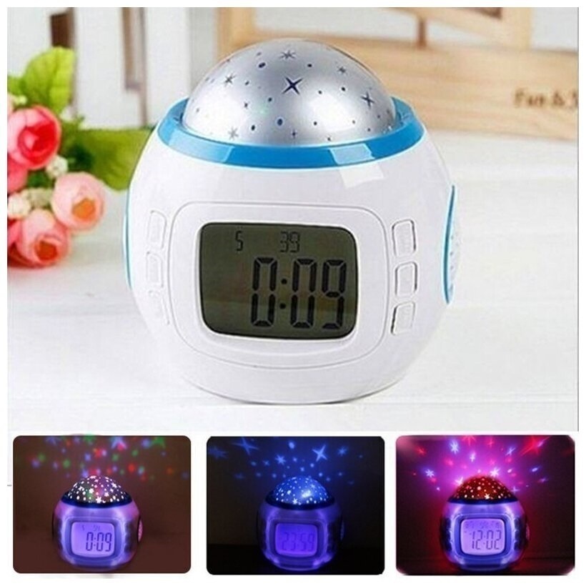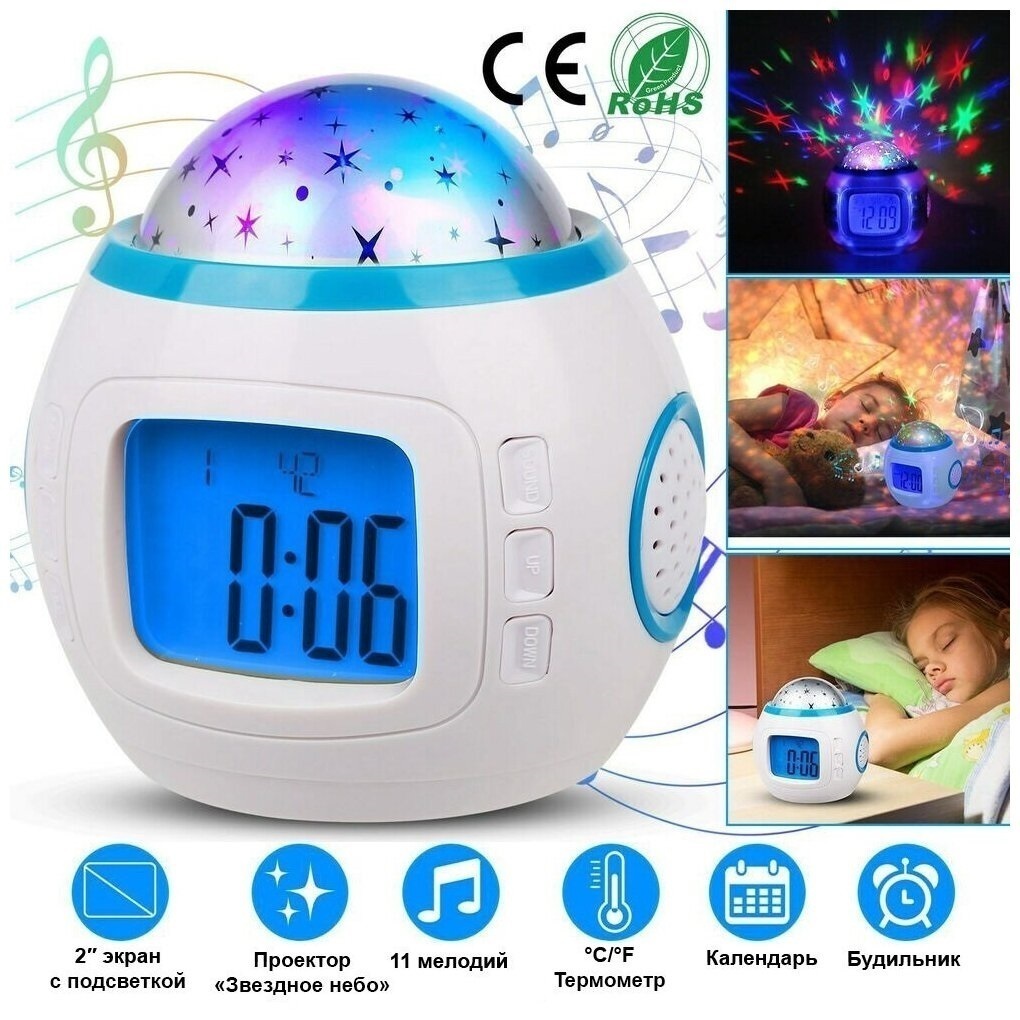 Часы будильник с проектором звездного неба, ночник музыкальный, 11 мелодий
