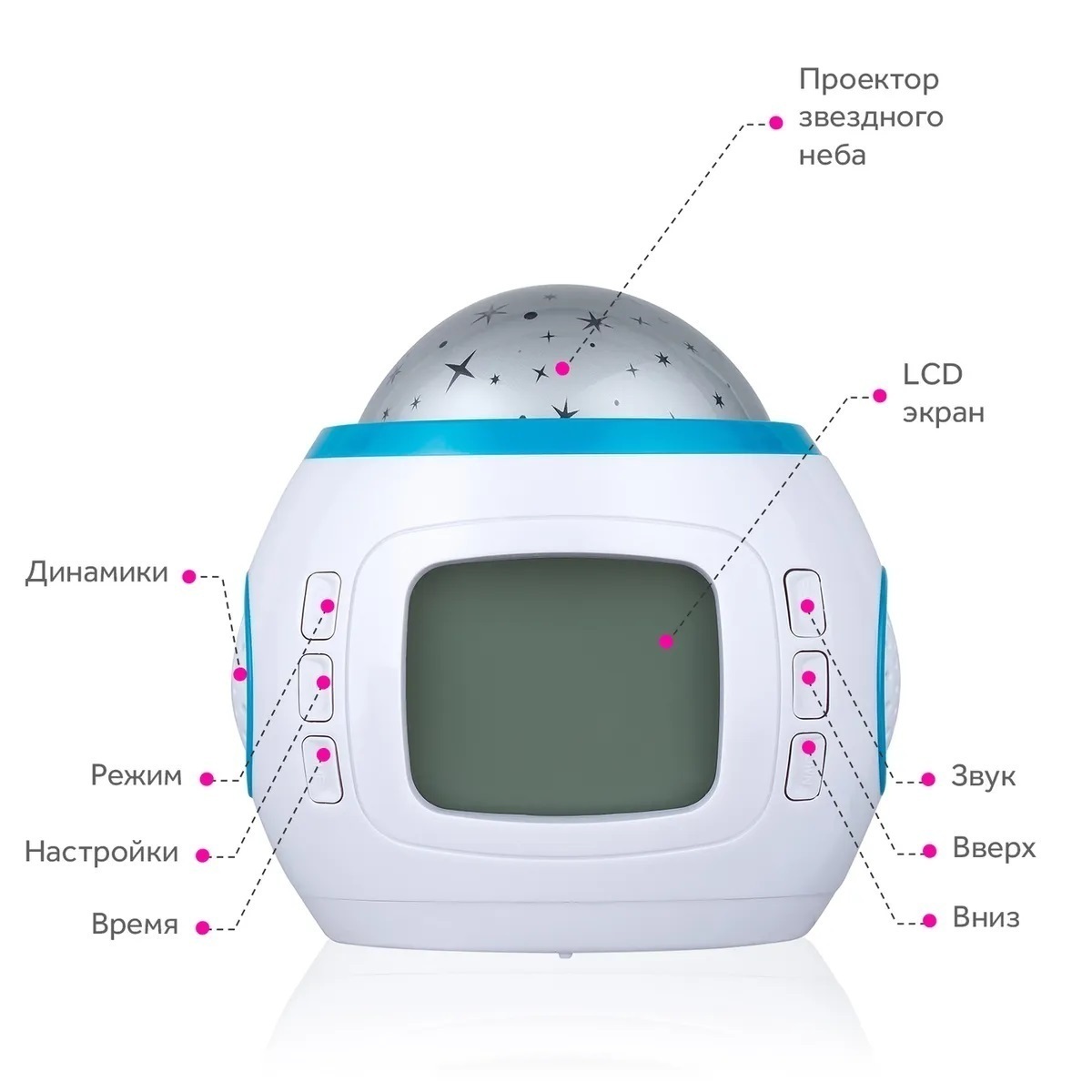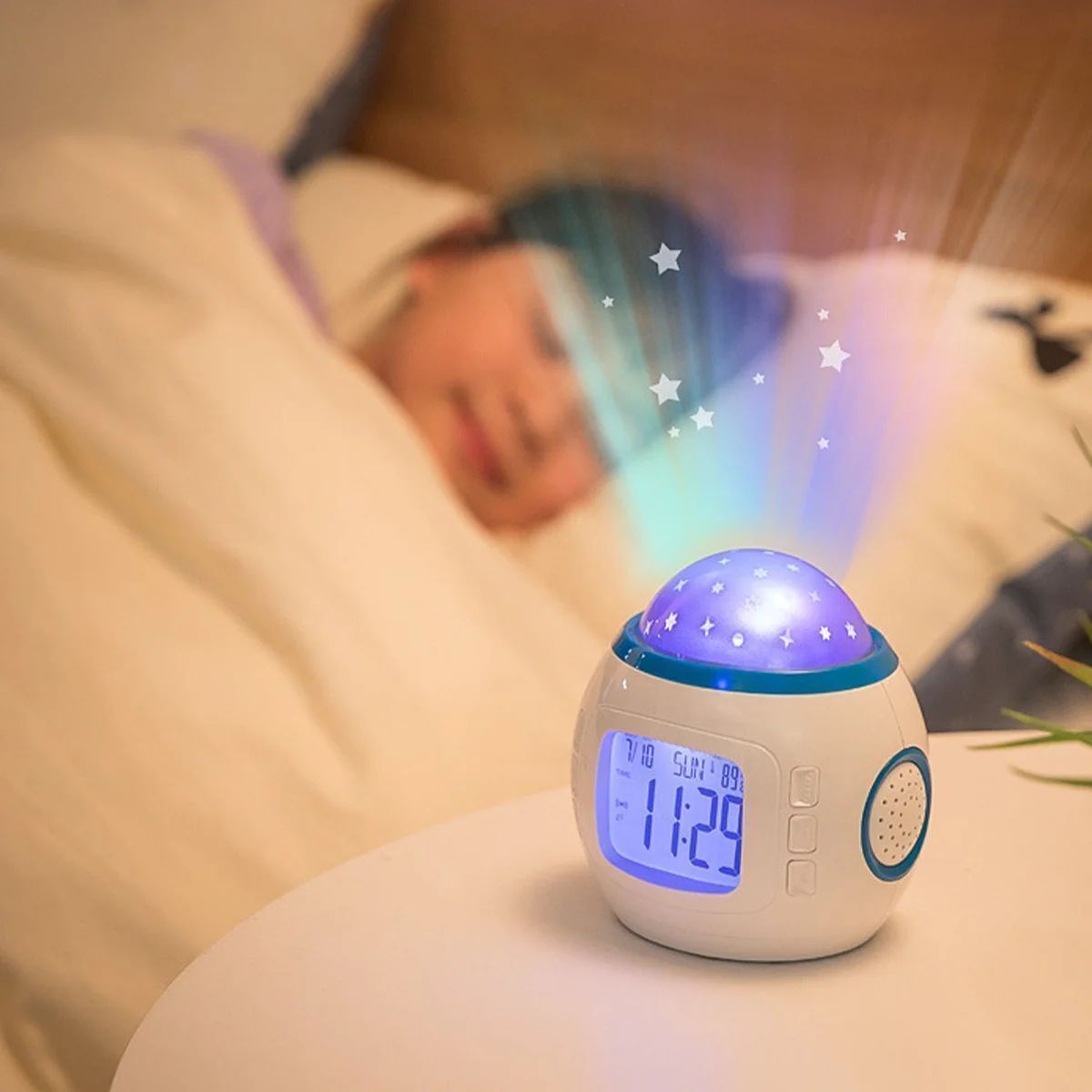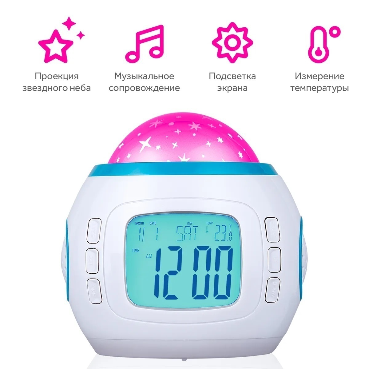 Часы будильник с проектором звездного неба, ночник музыкальный, 11 мелодий