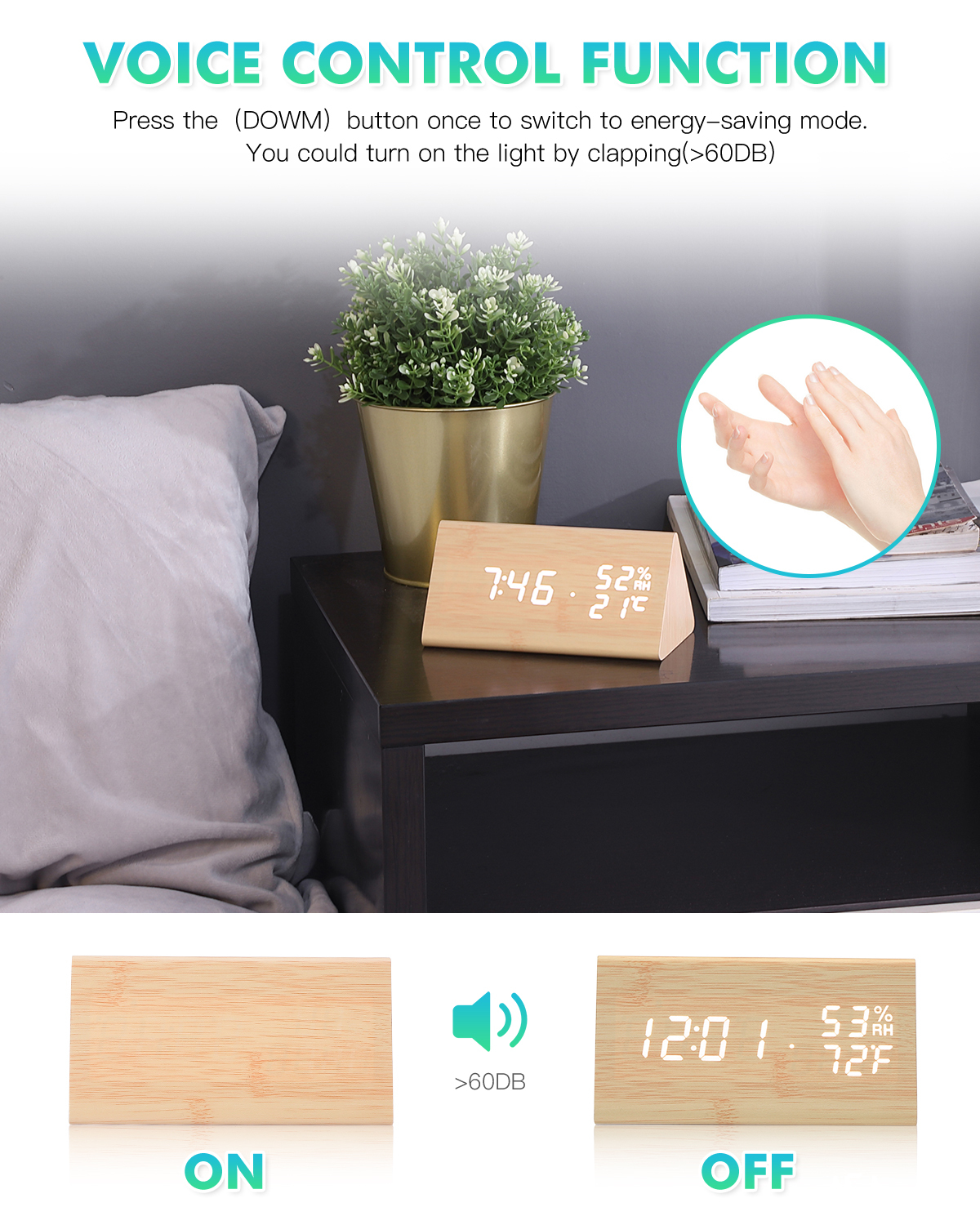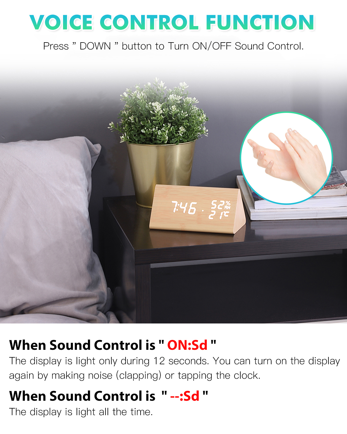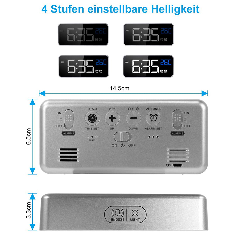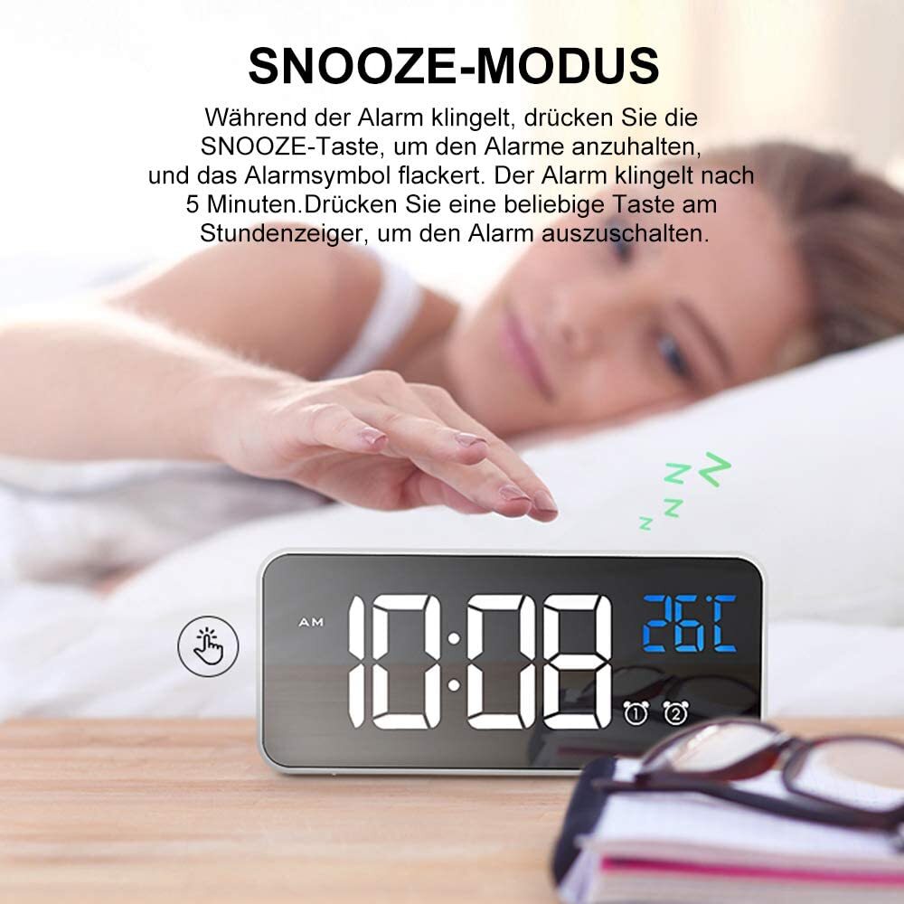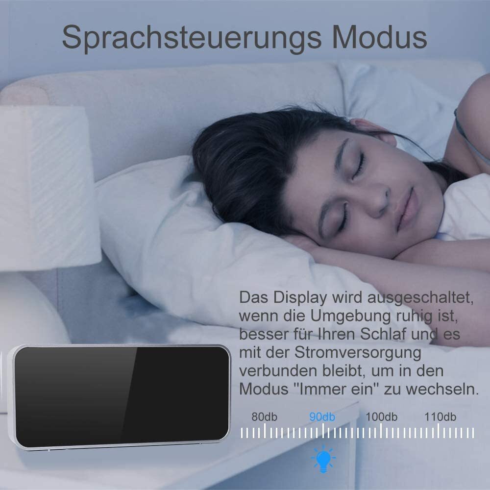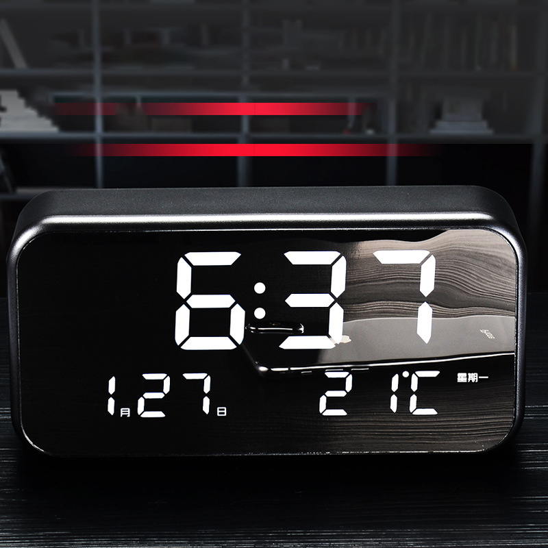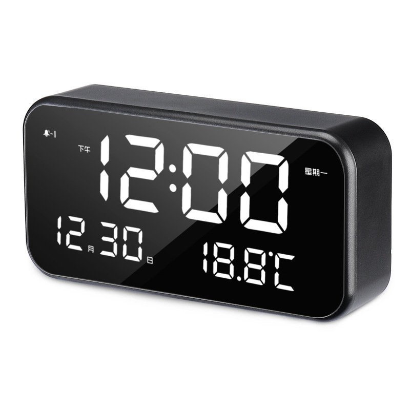 Цифровой будильник, голосовое управление, дисплей температуры, черный
