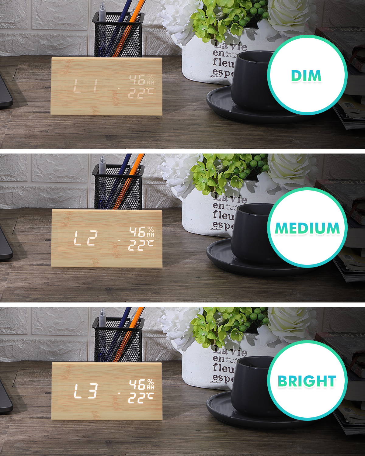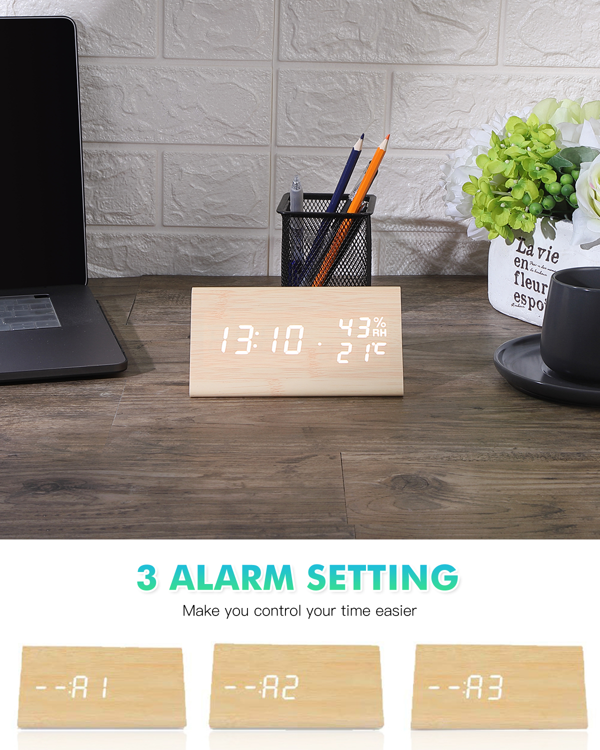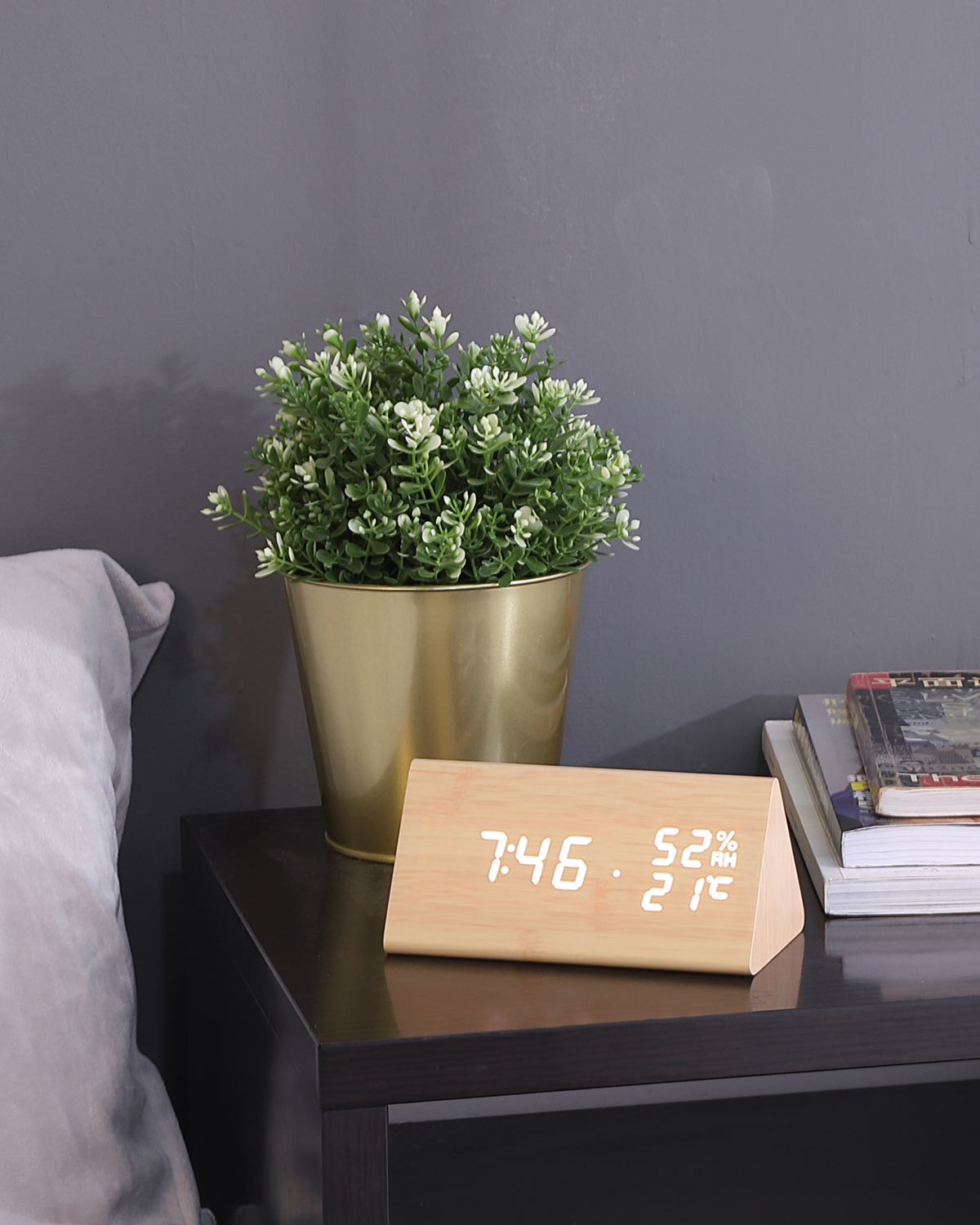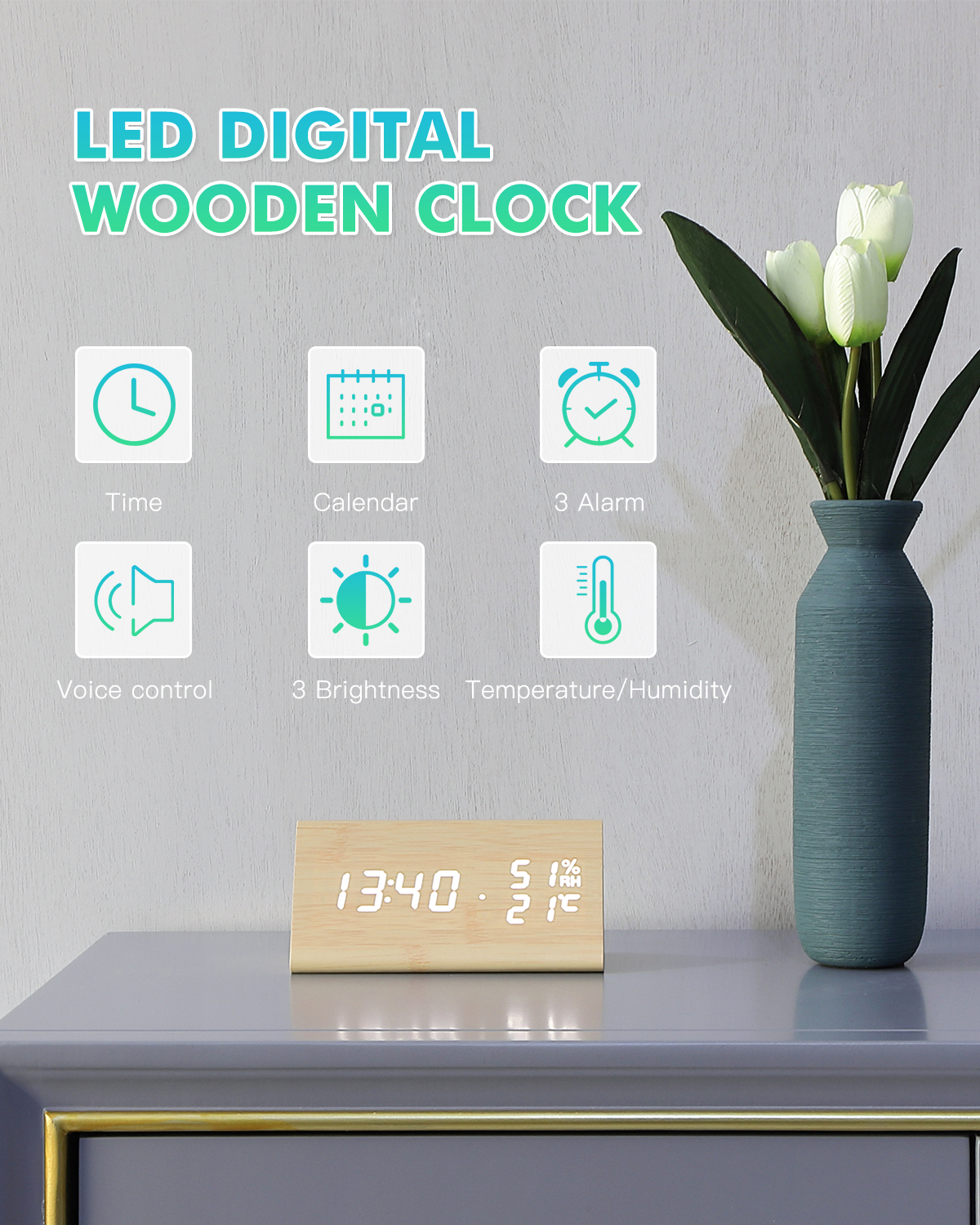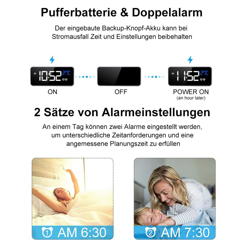 Цифровой будильник, голосовое управление, дисплей температуры, черный