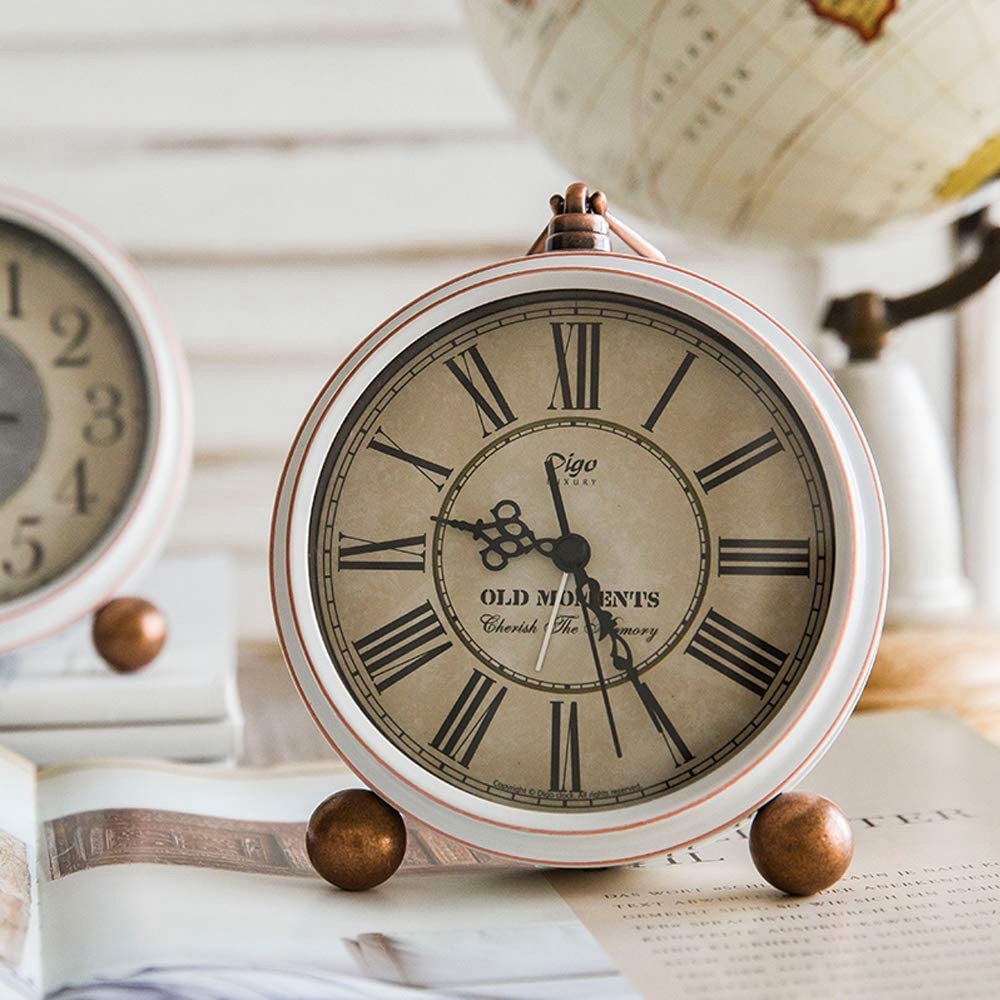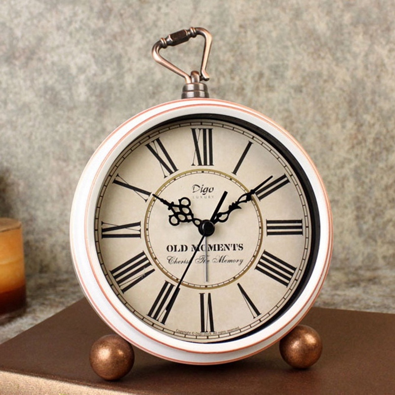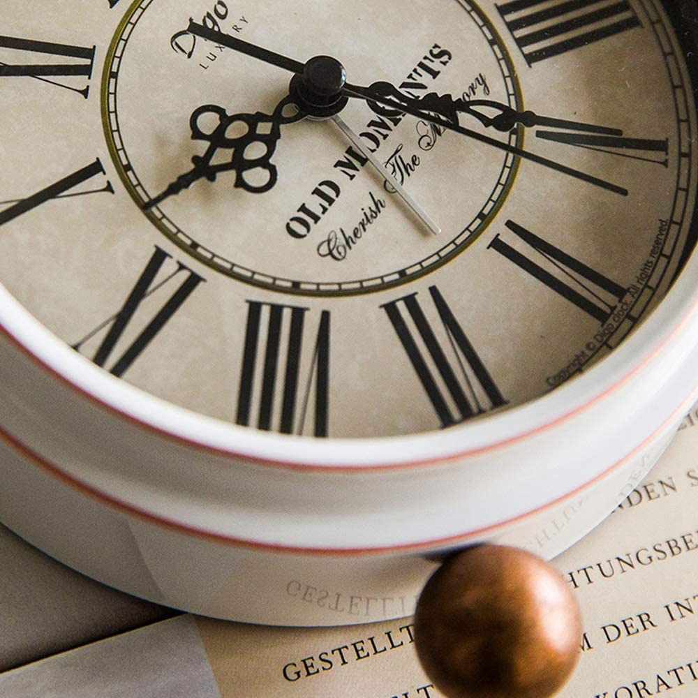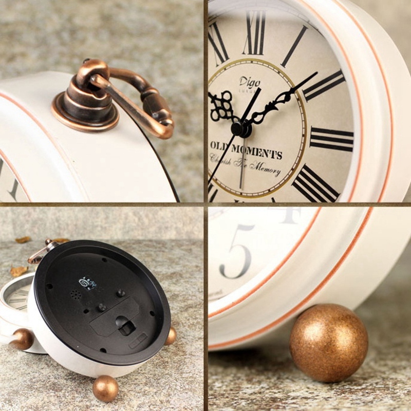 Digo Retro Alarm Clock European Battery Silent Desk, бронза B