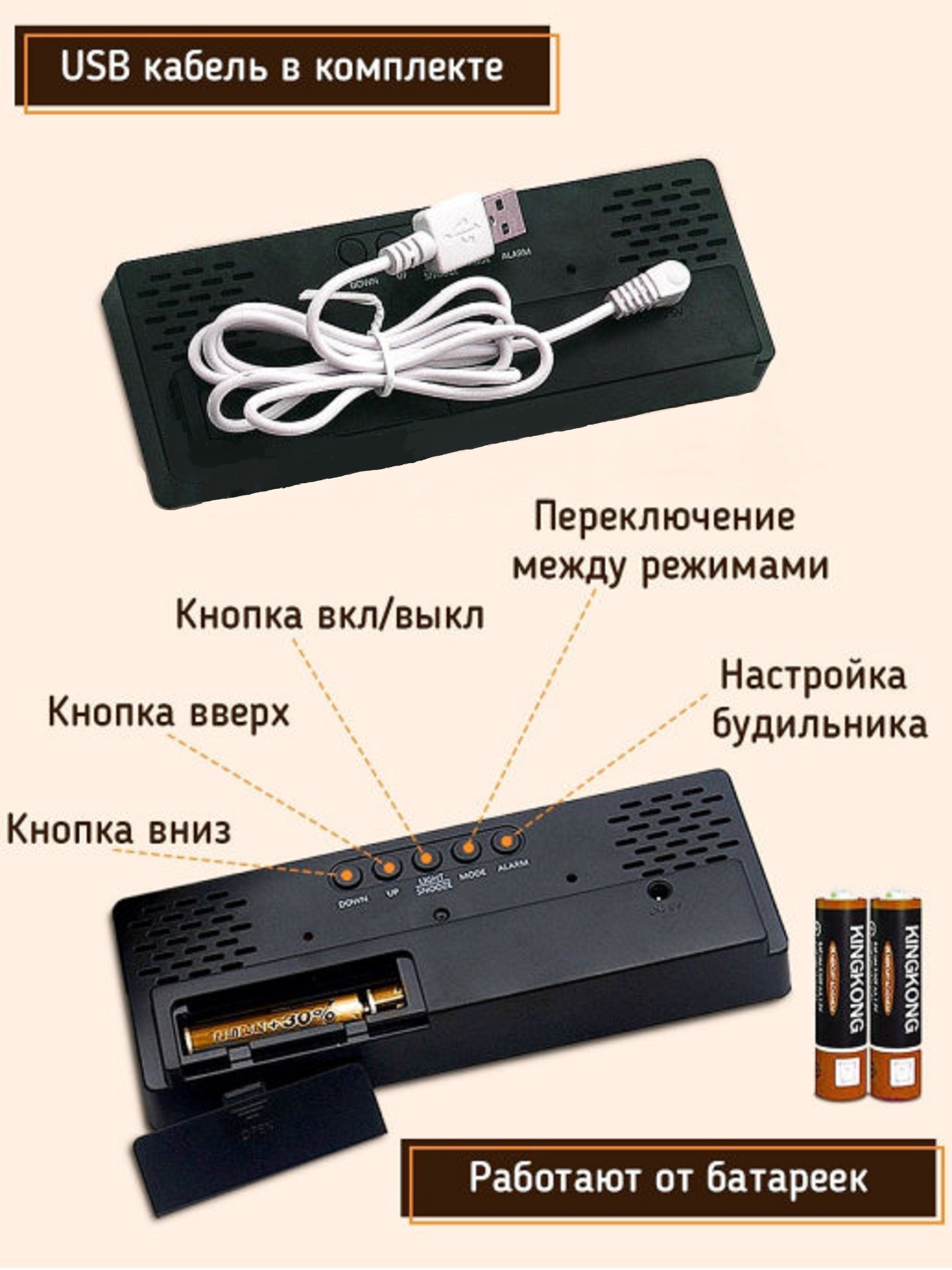 Электронные часы будильник с большим LED дисплеем, с большими цифрами