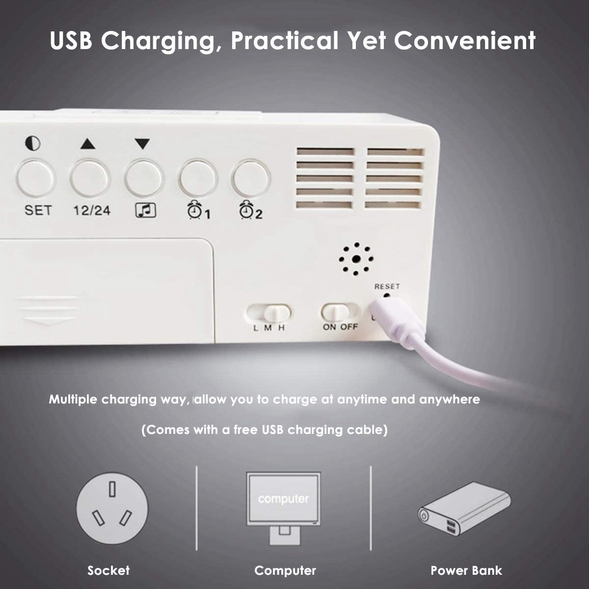 Светодиодный цифровой будильник, USB-зарядное устройство 12/24 ч с функцией повтора сигнала, черный